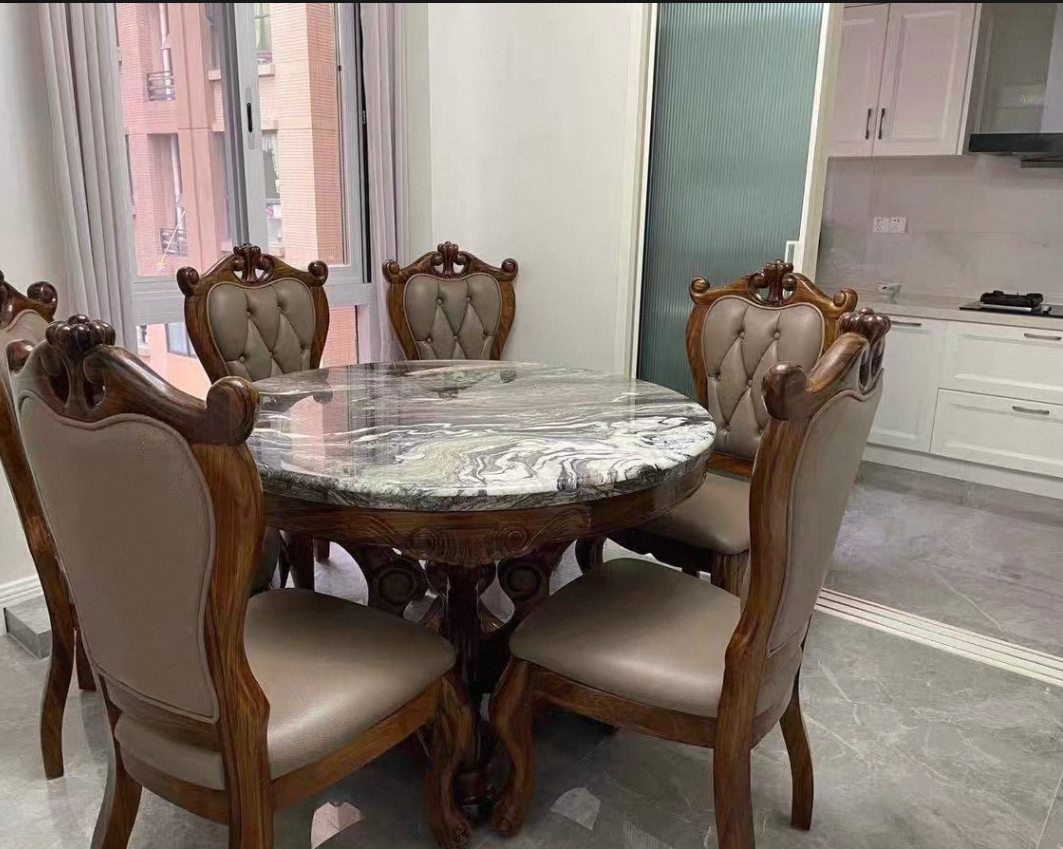 商品名称:【精品】千匠一品 轻奢欧式进口乌金木实木天然大理石餐台1.5米圆餐台Q37-X