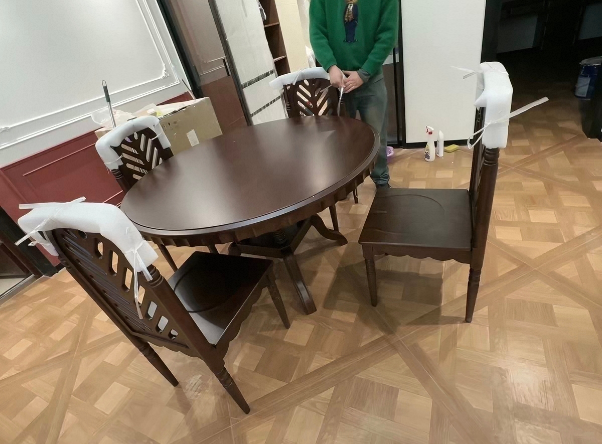 餐桌挺扎实的!做工挺好,没有瑕疵!运输包装很严实!和我家装修风格很搭配!挺满意的