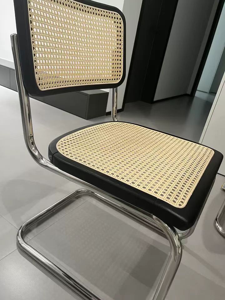 千匠一品现代极简优质藤编+实木藤编框架+不锈钢椅架瓦力椅-H