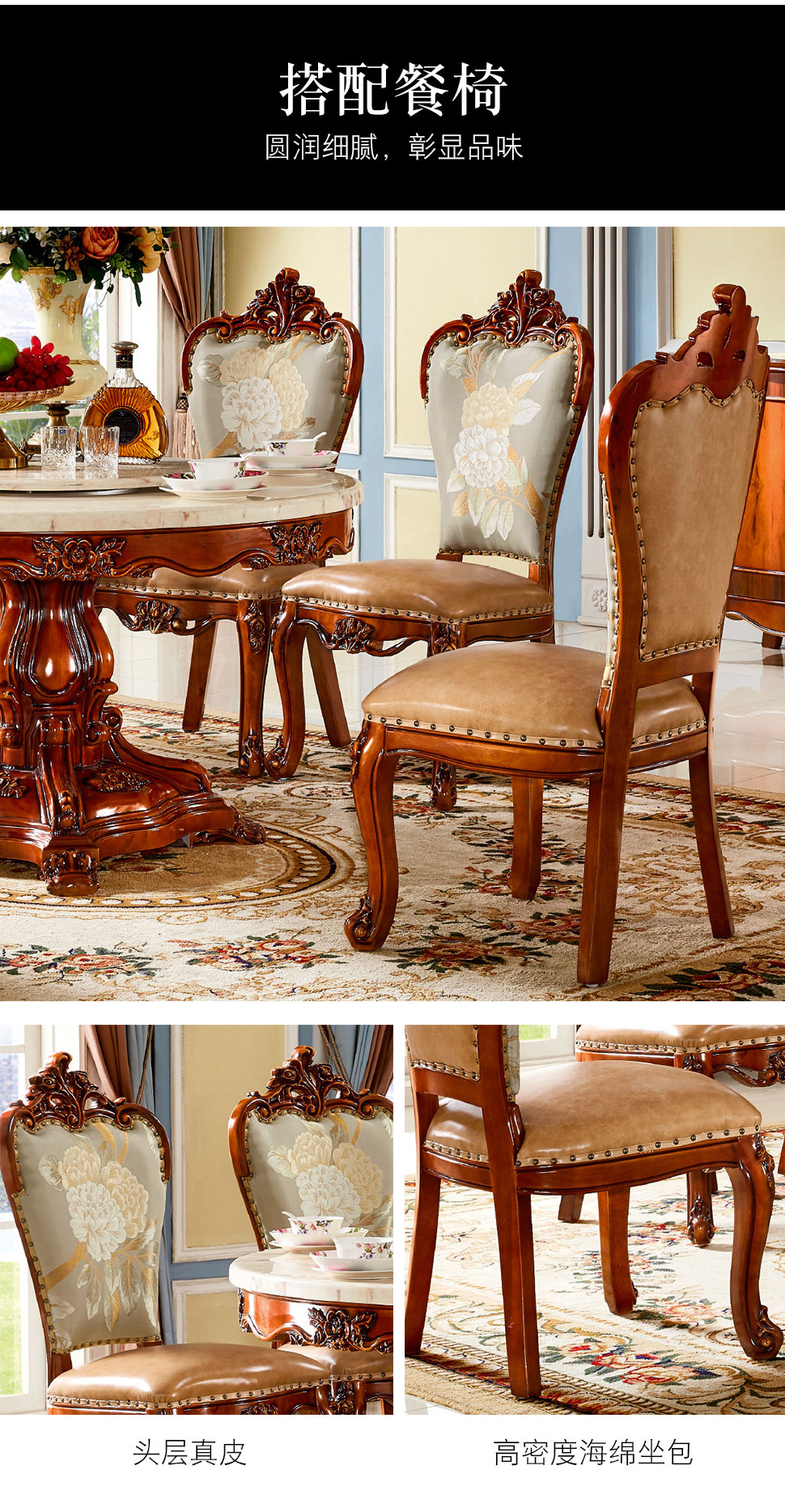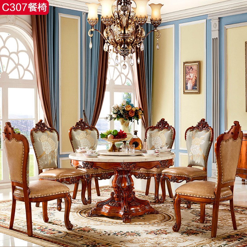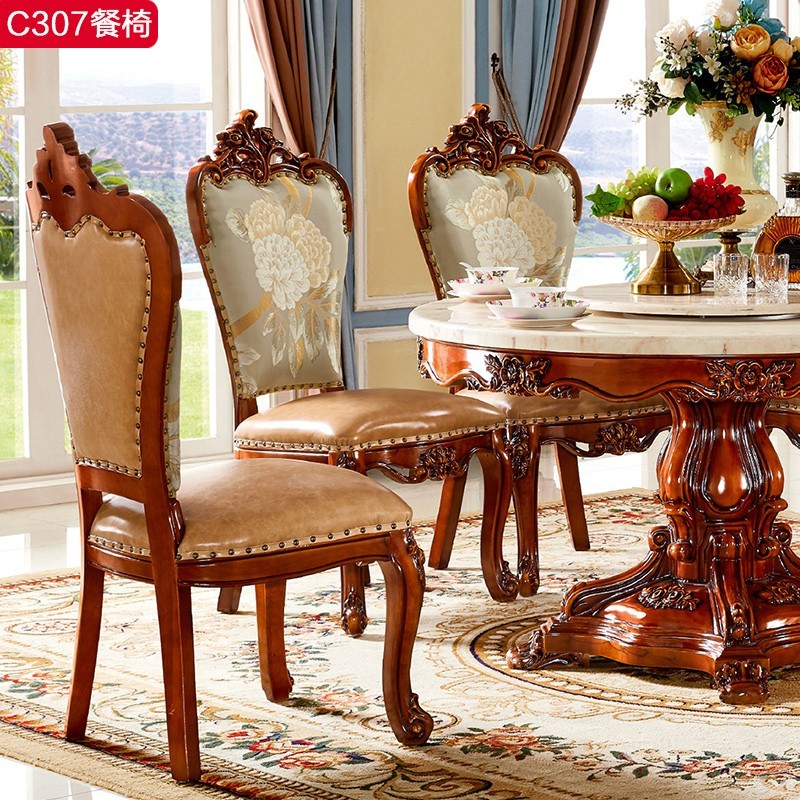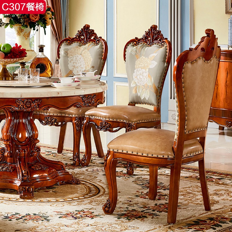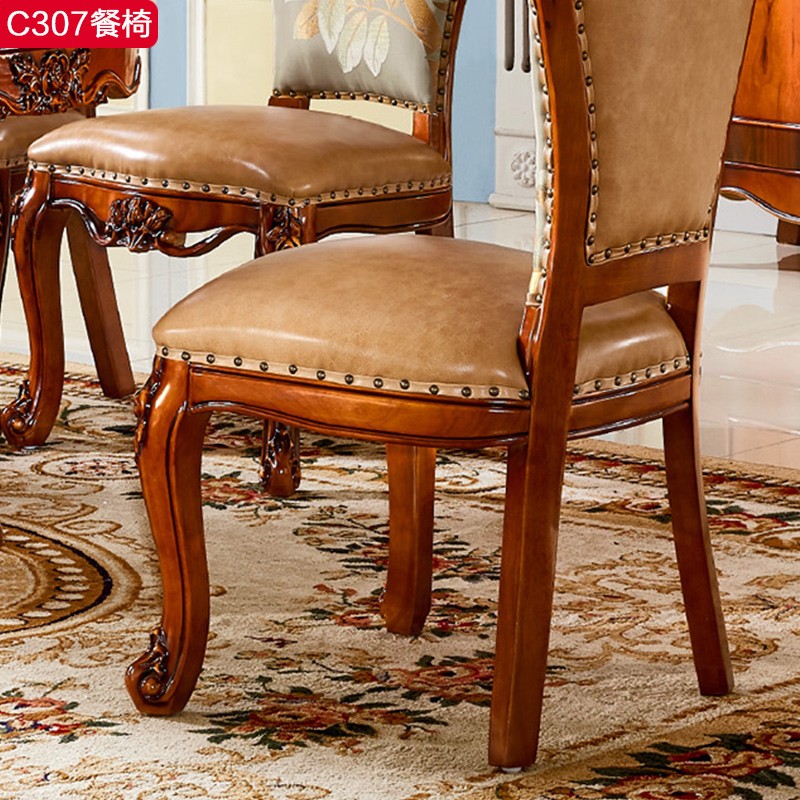 △千匠一品欧式风格实木多层板+高密度海绵坐包+头层真皮+橡木框架餐椅C307-B