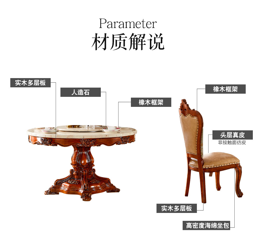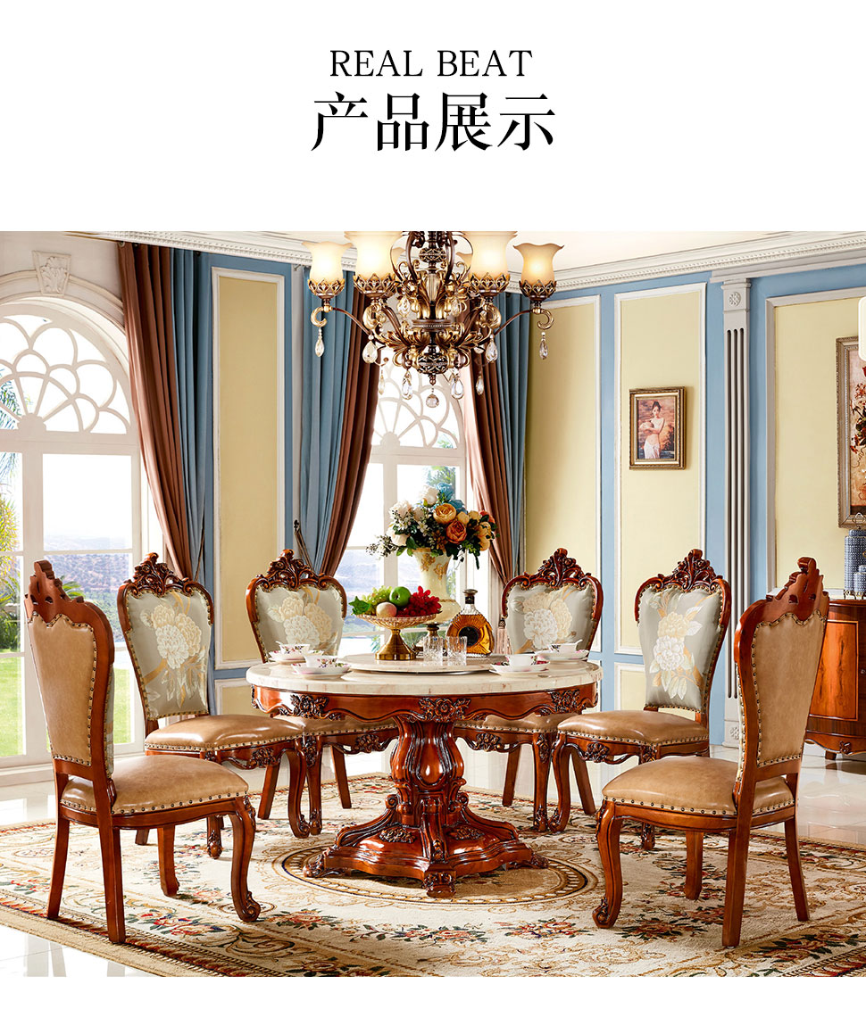 商品名称:△千匠一品欧式风格实木多层板+高密度海绵坐包+头层真皮+橡木框架餐椅C307-B