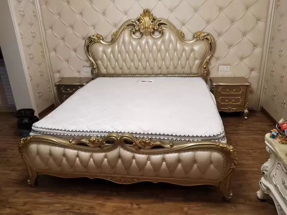 千匠一品欧式风格头层牛皮+橡木框架+实木多层架+高密度海绵+非接触面仿皮1.8米床8828-B