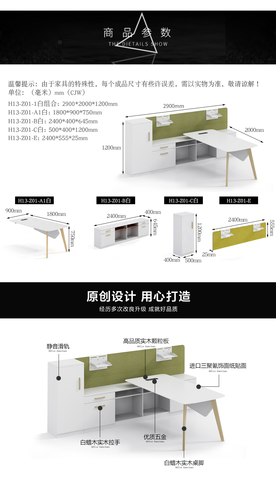 商品名称:千匠一品简约风格进口暖白+白蜡木3.1M白办公桌组合H13-Z01-1-C