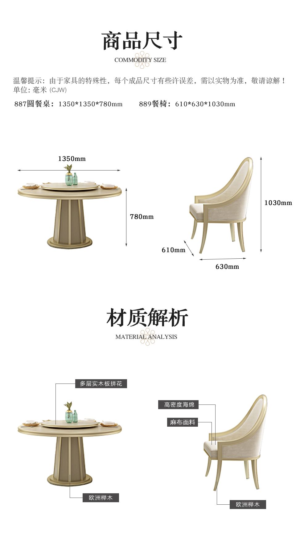 【精品】千匠一品 美式轻奢优质多层实木板拼花+欧洲榉木1.35m圆餐桌+转盘887-H