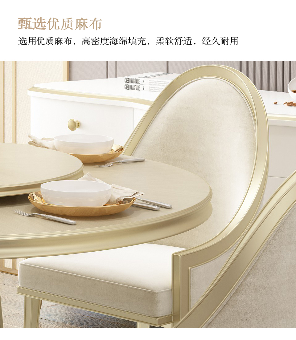 商品名称:【精品】千匠一品 美式轻奢优质亲肤绒布+高密度海绵+欧洲榉木餐椅889-H