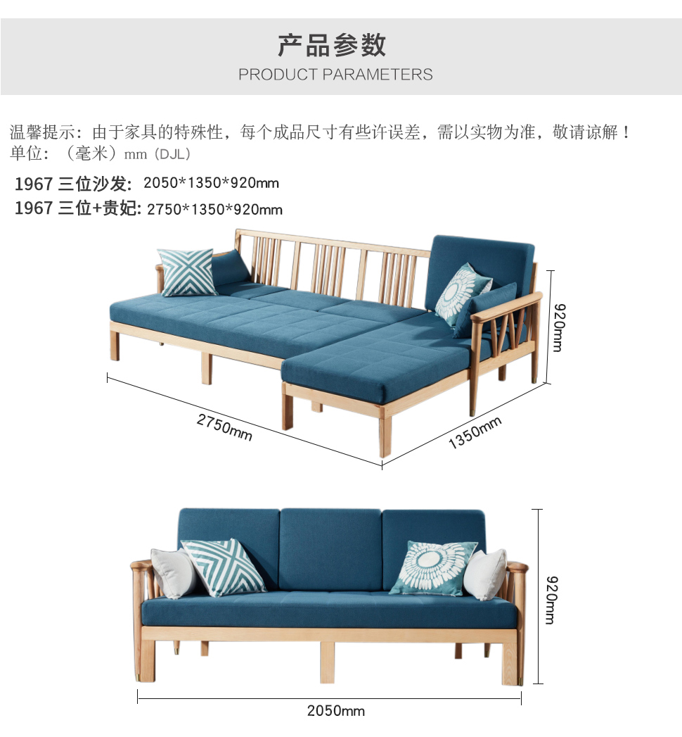 商品名称:千匠一品精选北欧风格优质高密度海绵+优质麻布+实木框架2.75M拉床沙发-1967-J