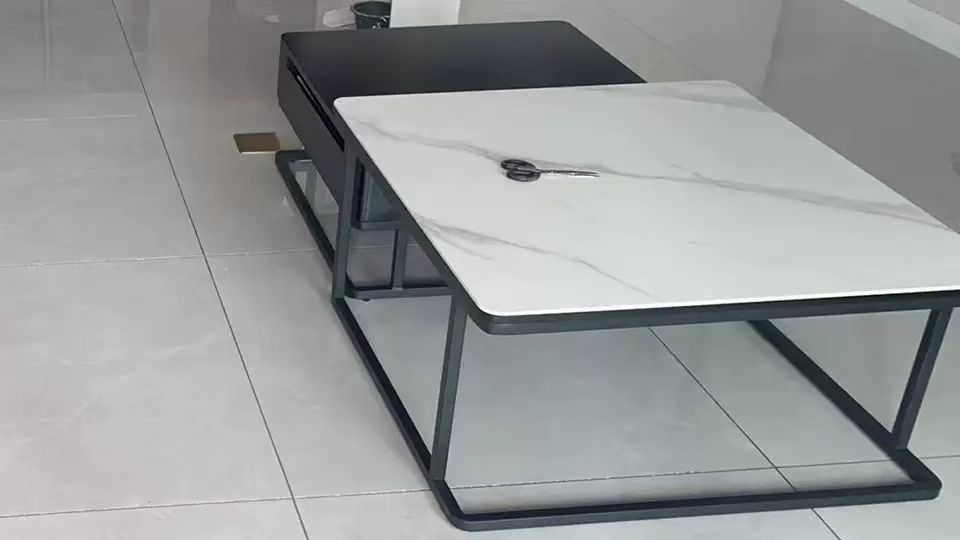 千匠一品 意式风格 优质双岩板面+黑木纹+碳素钢黑砂脚 茶几组合CT01-G