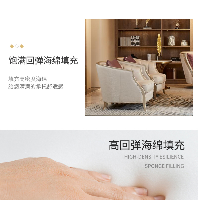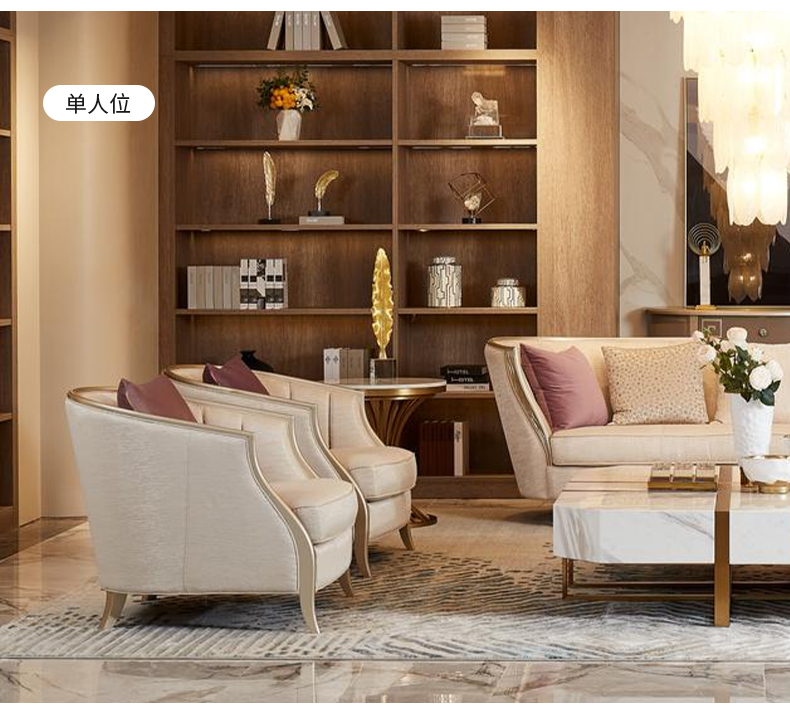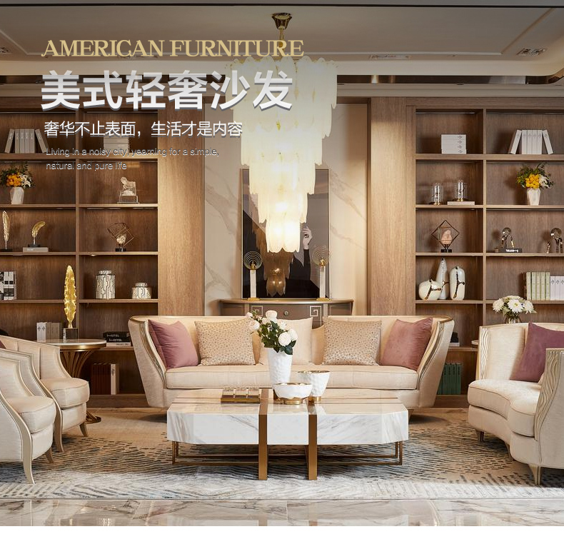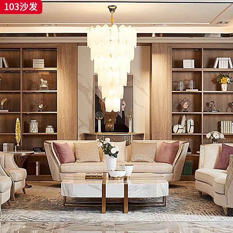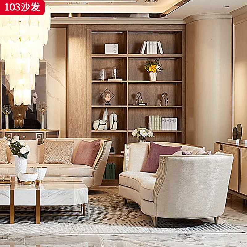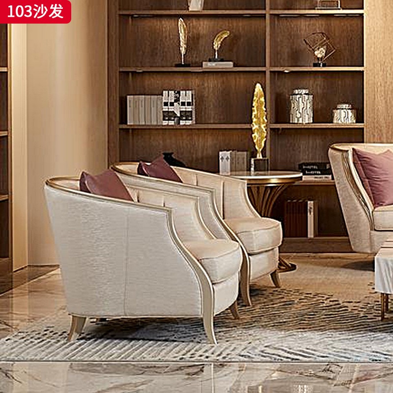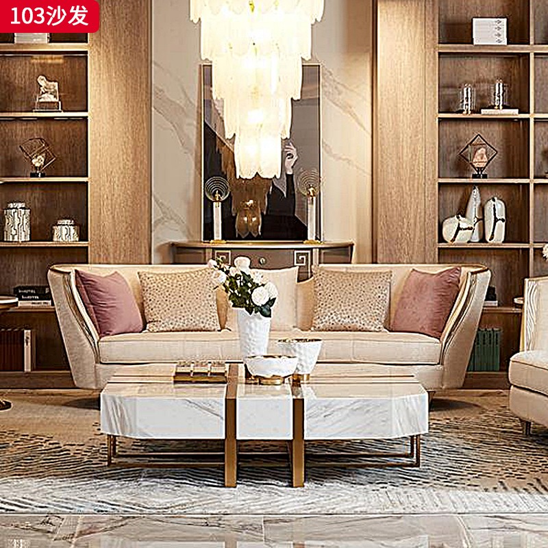 △千匠一品 轻奢美式风格 纳帕仿真皮+绒麻布 高档大气沙发103沙发-X