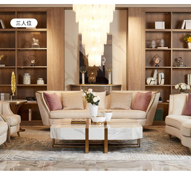 △千匠一品 轻奢美式风格 纳帕仿真皮+绒麻布 高档大气沙发111沙发-X