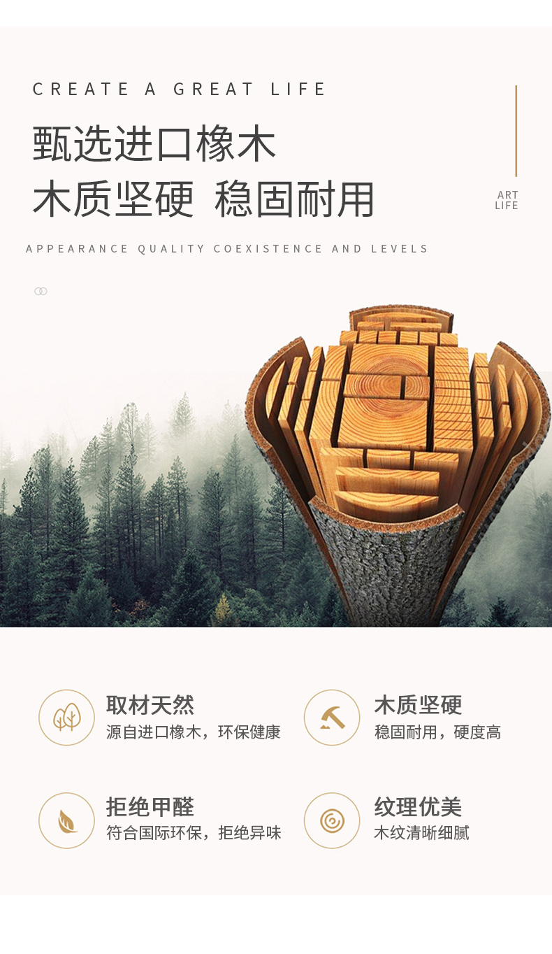 △千匠一品 轻奢美式风格 实木+实木多层 高档大气茶几913茶几-X