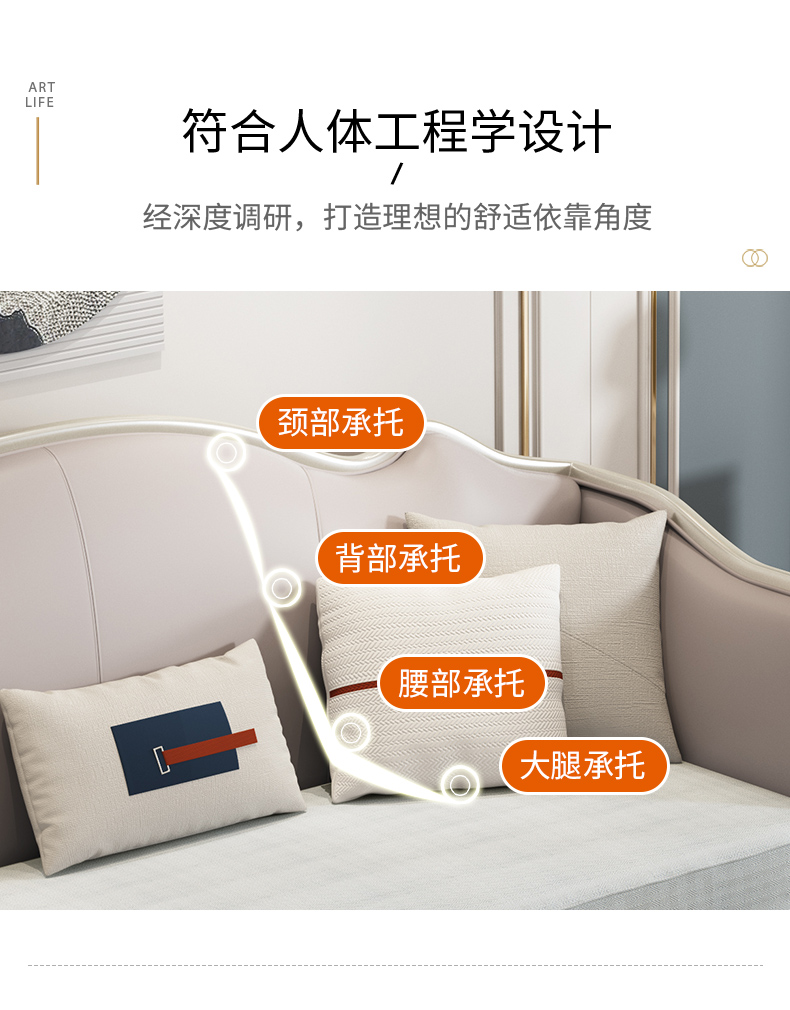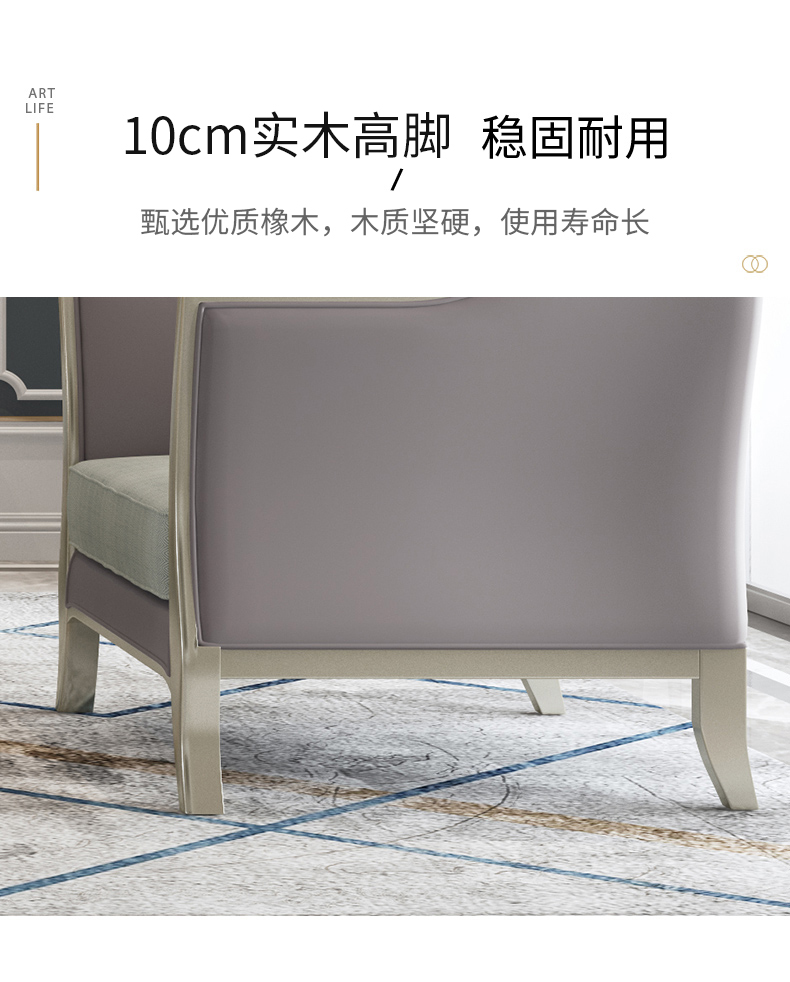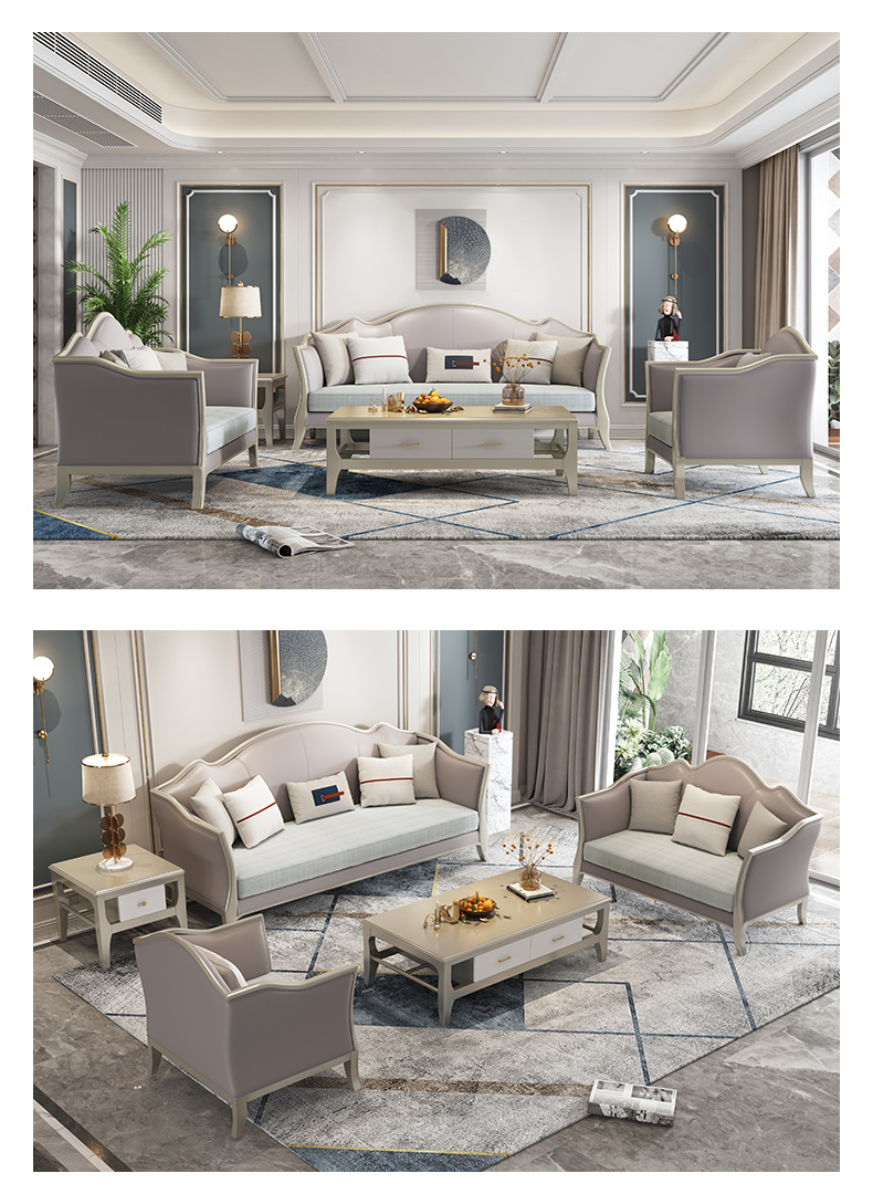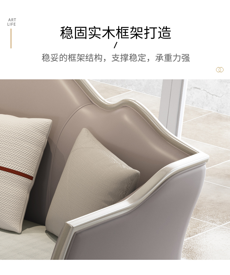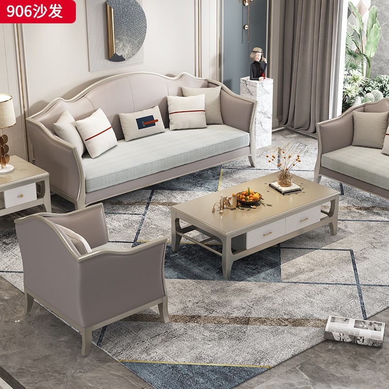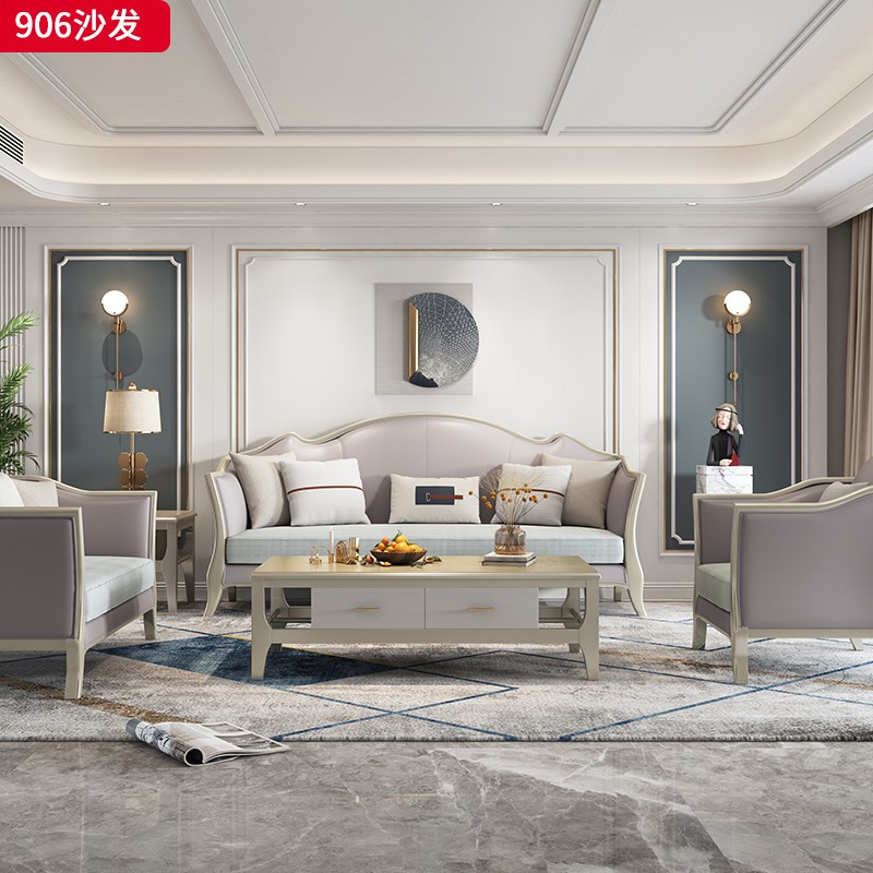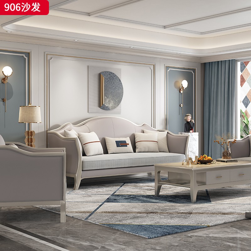 △千匠一品 轻奢美式风格 纳帕仿真皮+绒麻布 高档大气沙发906沙发-X
