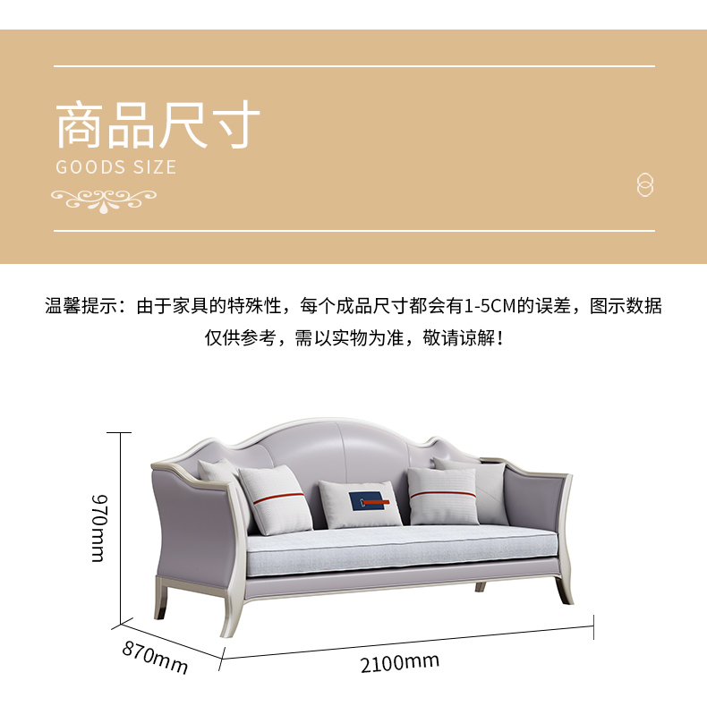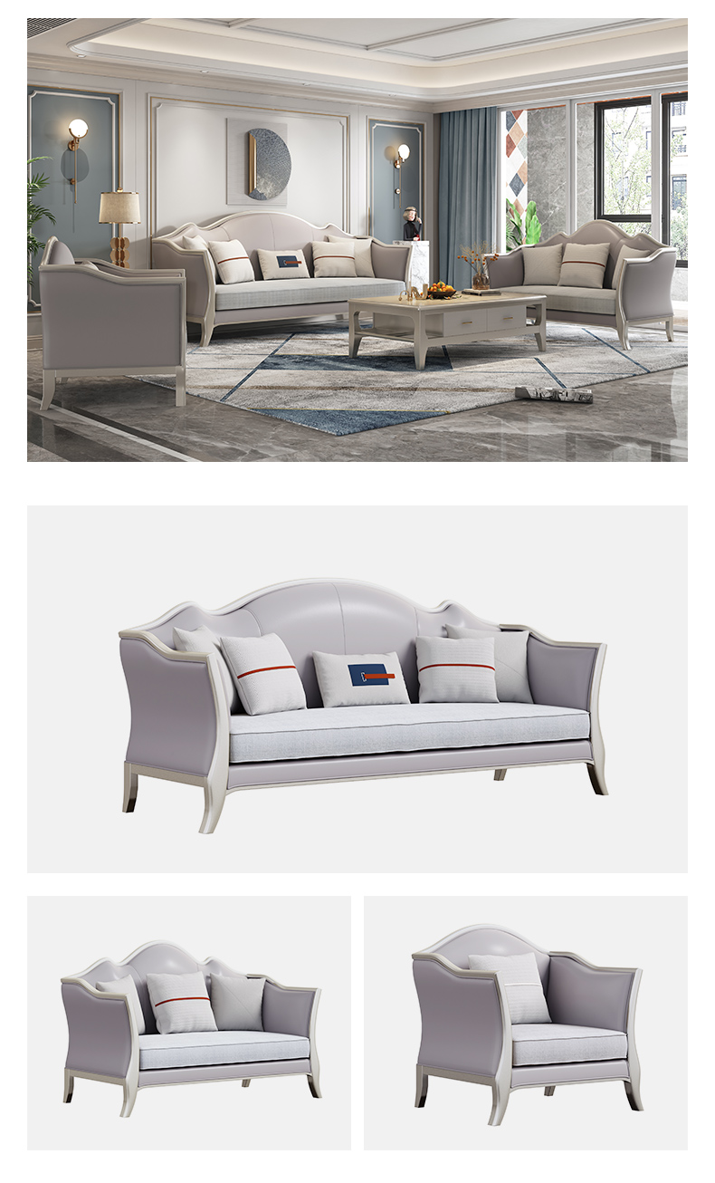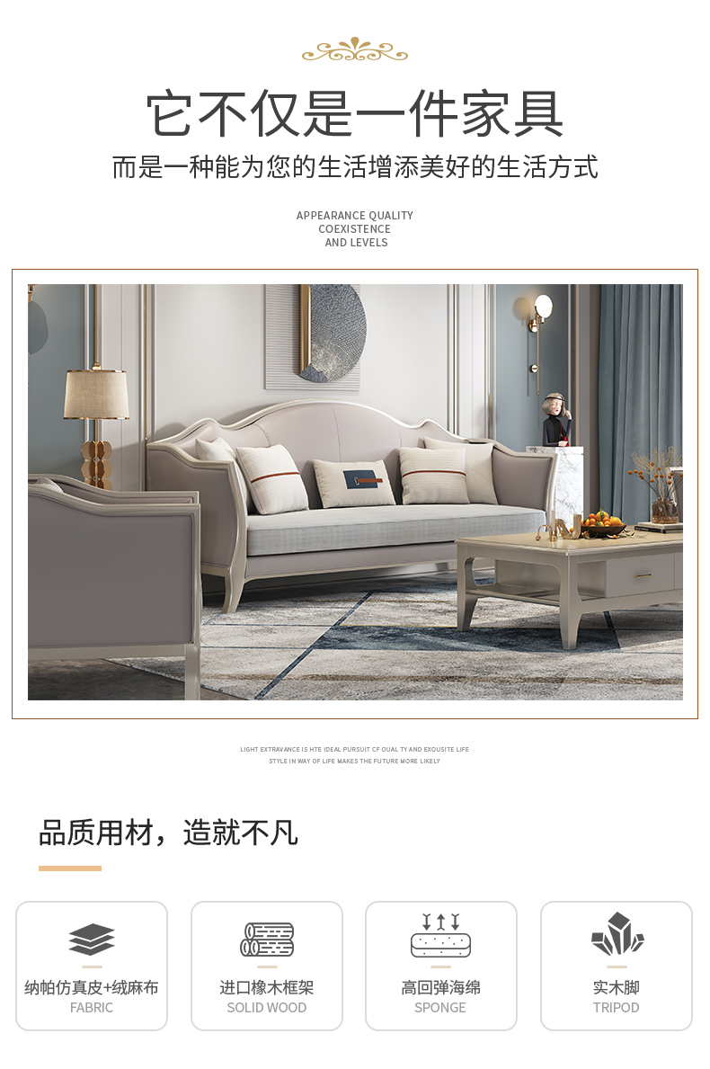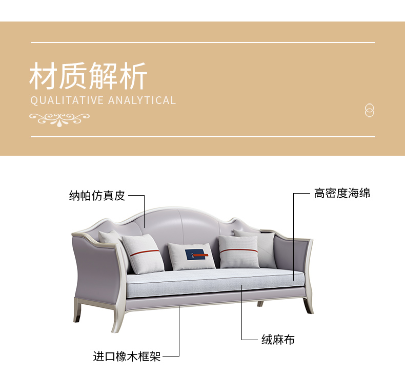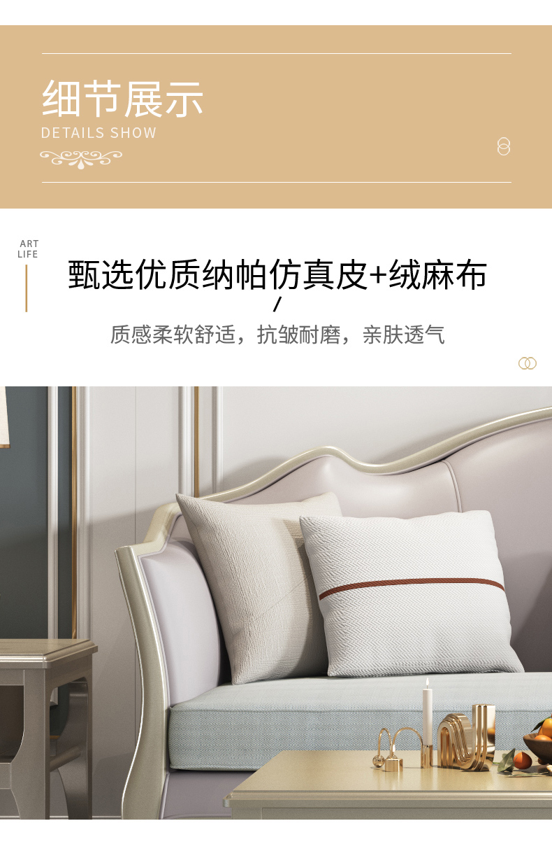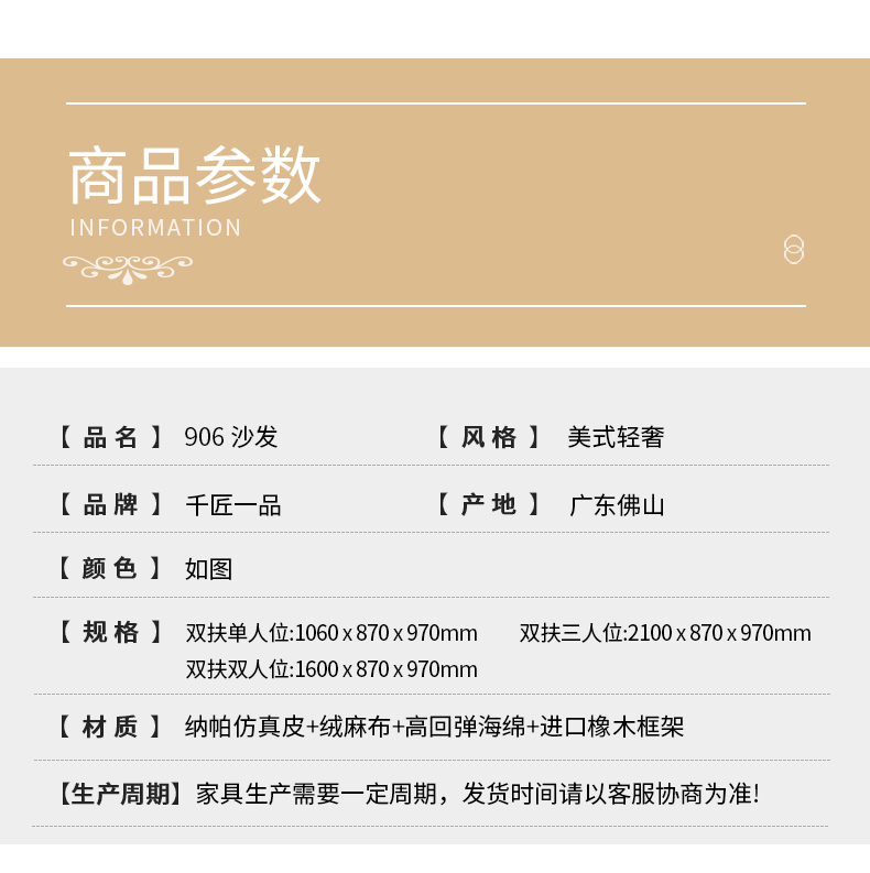 商品名称:△千匠一品 轻奢美式风格 纳帕仿真皮+绒麻布 高档大气沙发906沙发-X
