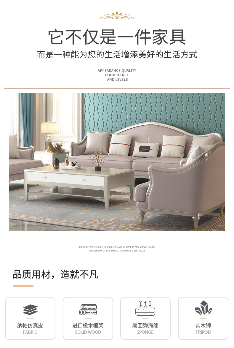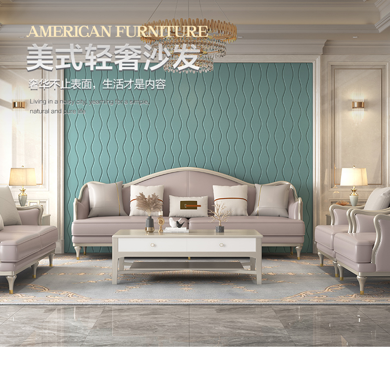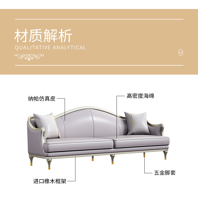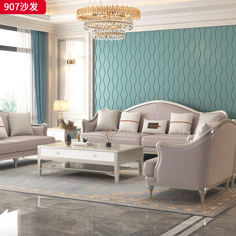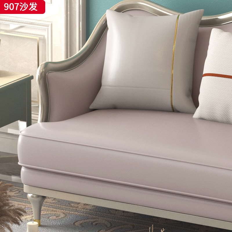 △千匠一品 轻奢美式风格 纳帕仿真皮+绒麻布 高档大气沙发 907沙发-X