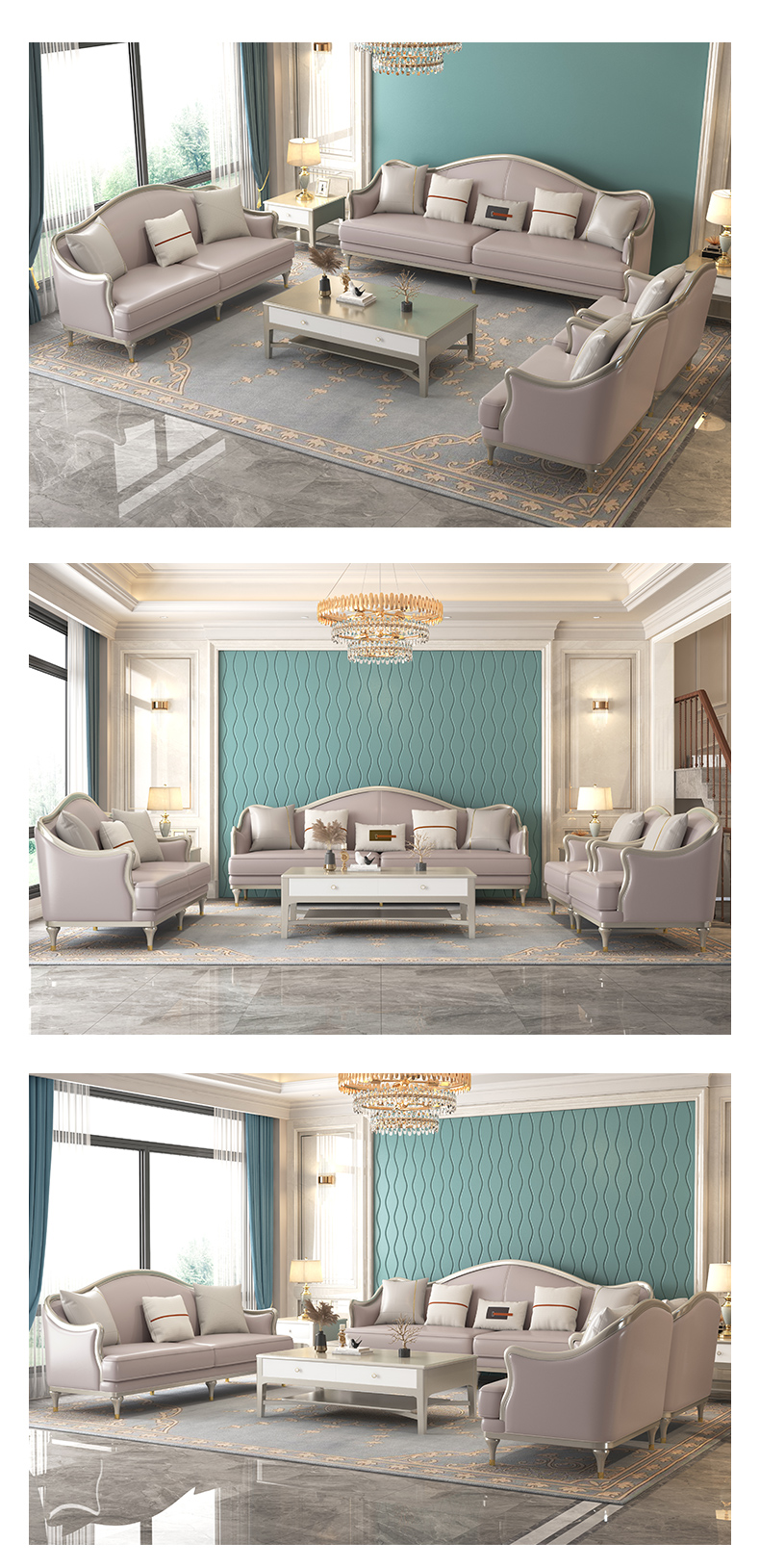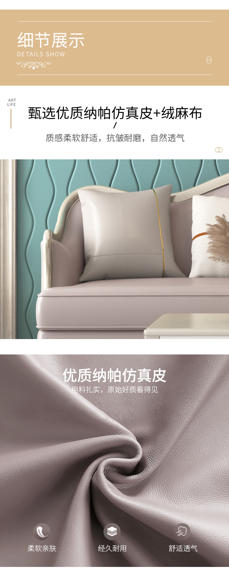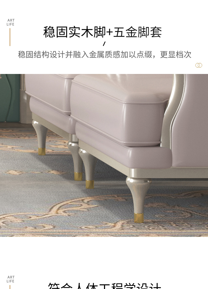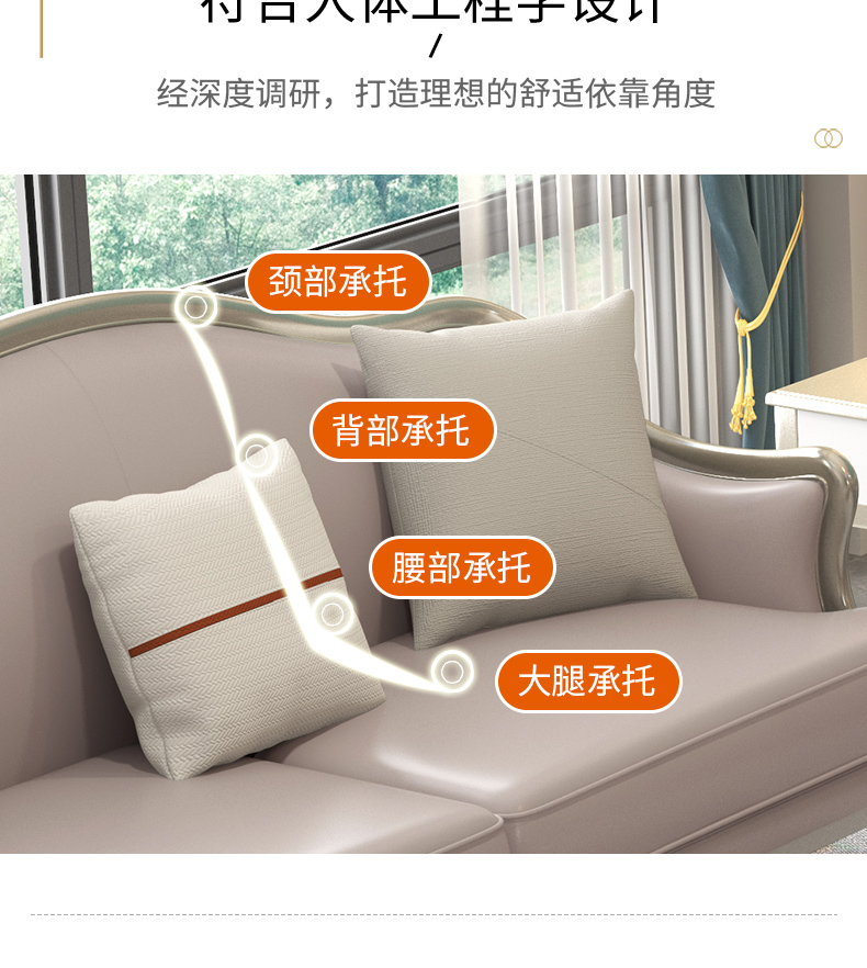 △千匠一品 轻奢美式风格 纳帕仿真皮+绒麻布 高档大气沙发 907沙发-X