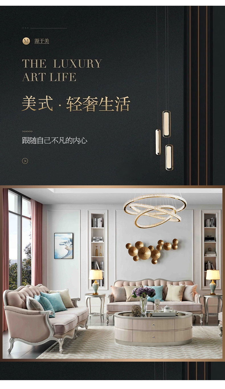 △千匠一品 轻奢美式风格 纳帕仿真皮+绒麻布 高档大气沙发111沙发-X