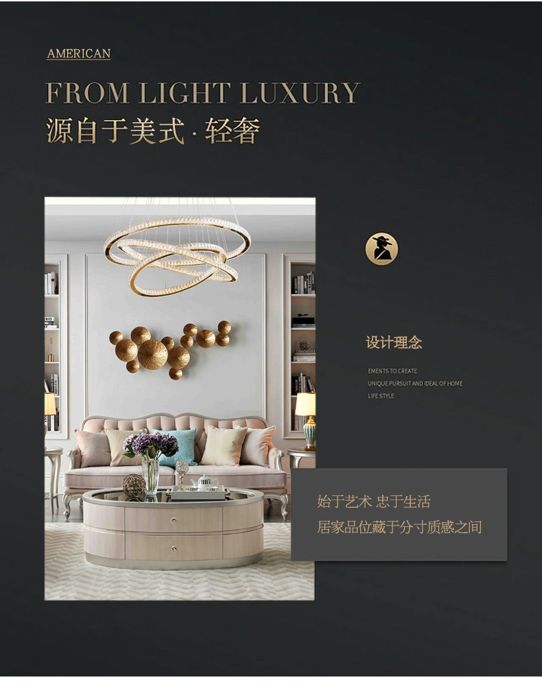△千匠一品 轻奢美式风格 实木+实木多层 高档大气茶几913茶几-X
