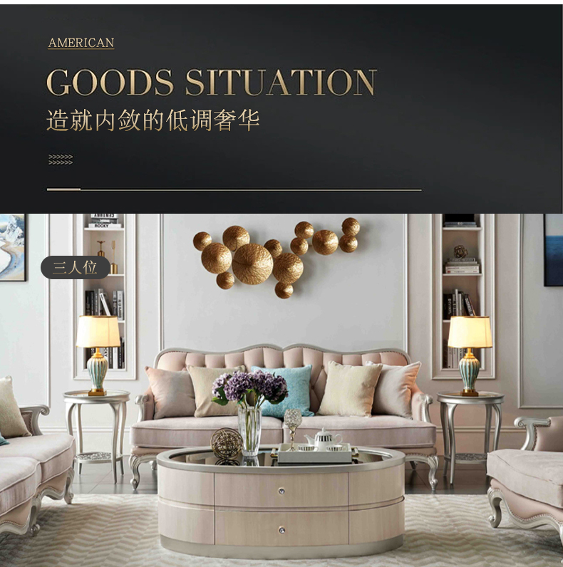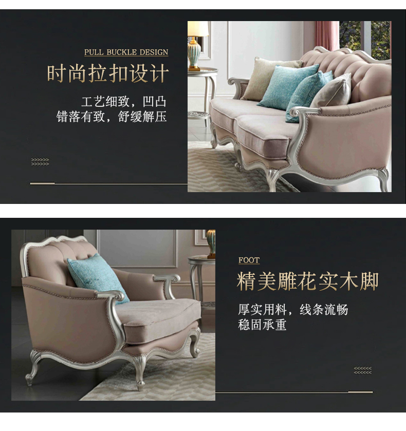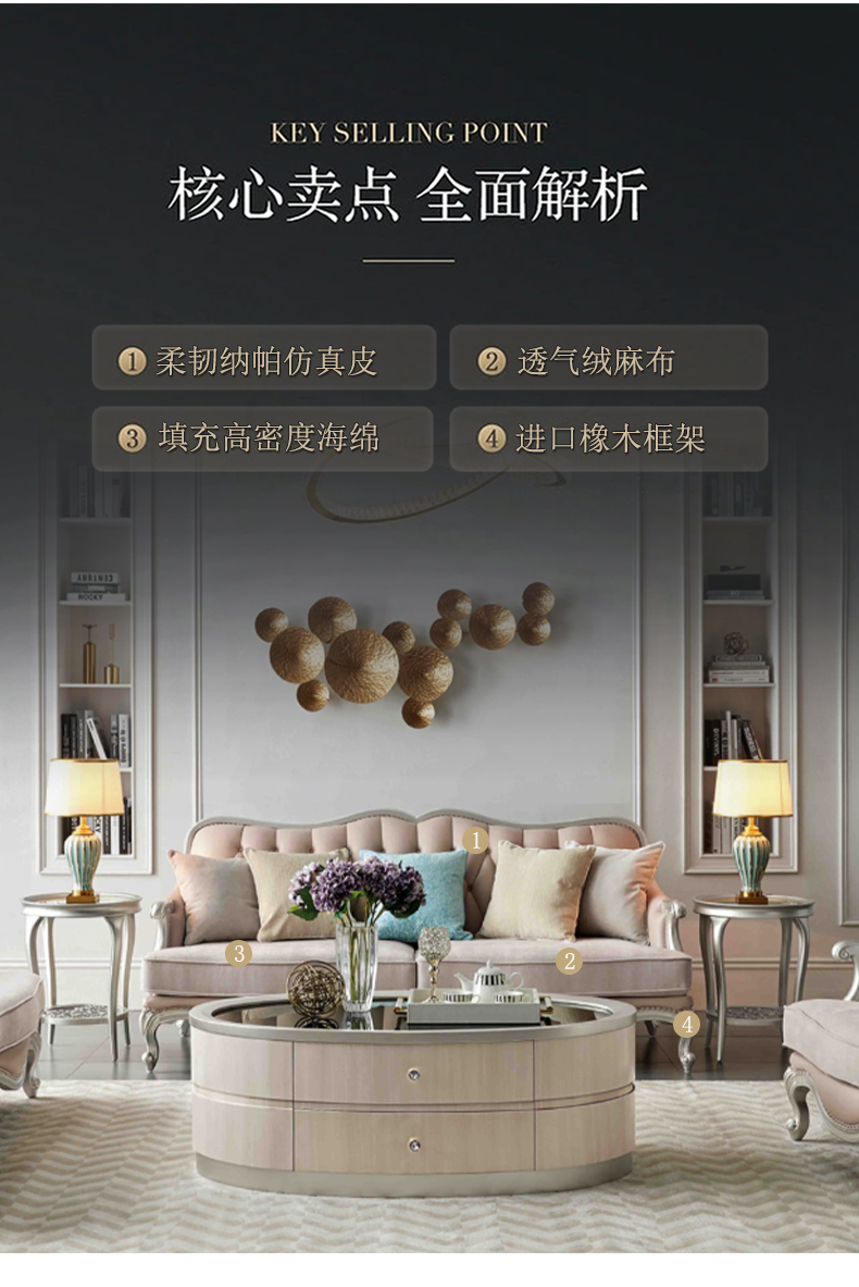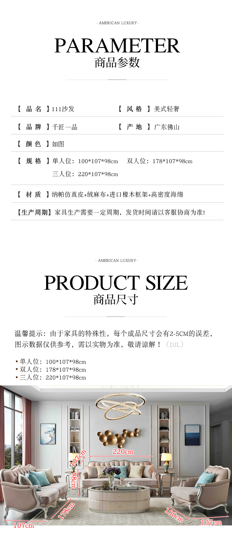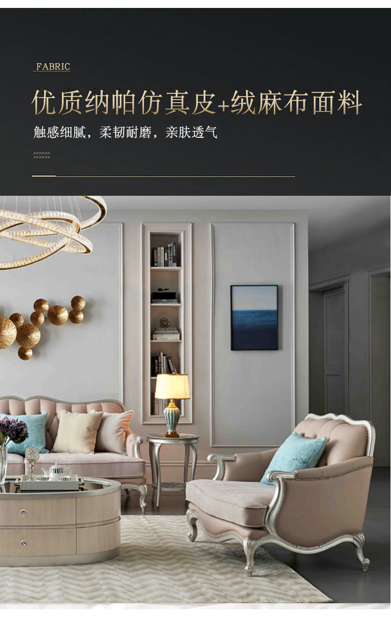 商品名称:△千匠一品 轻奢美式风格 纳帕仿真皮+绒麻布 高档大气沙发111沙发-X