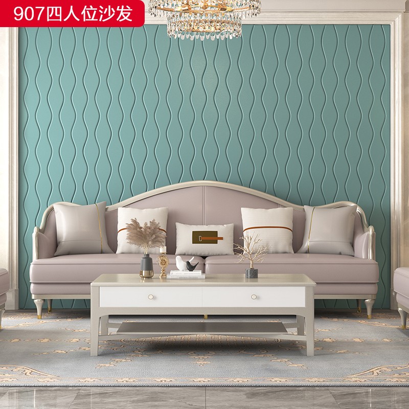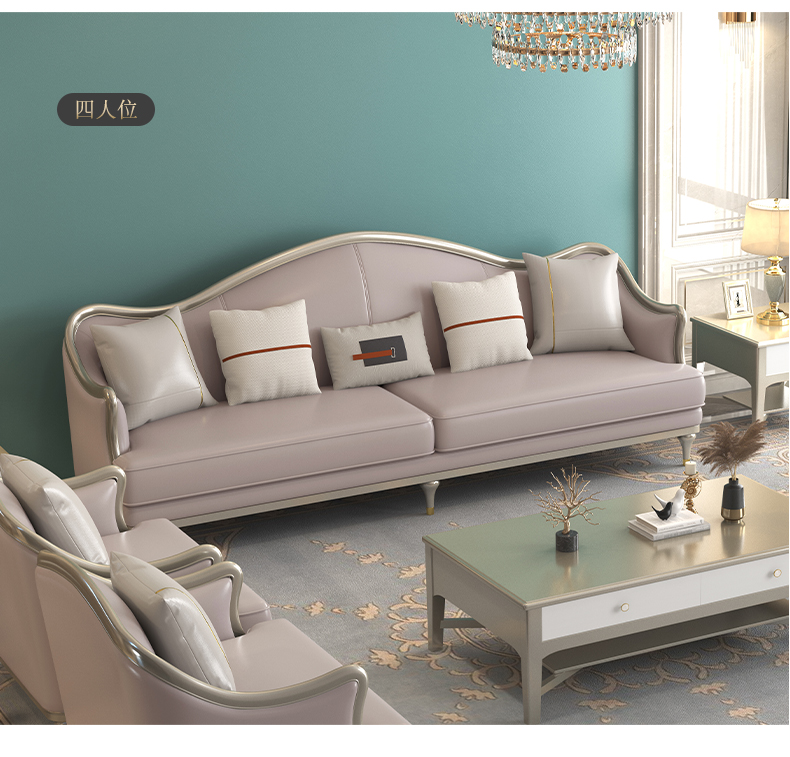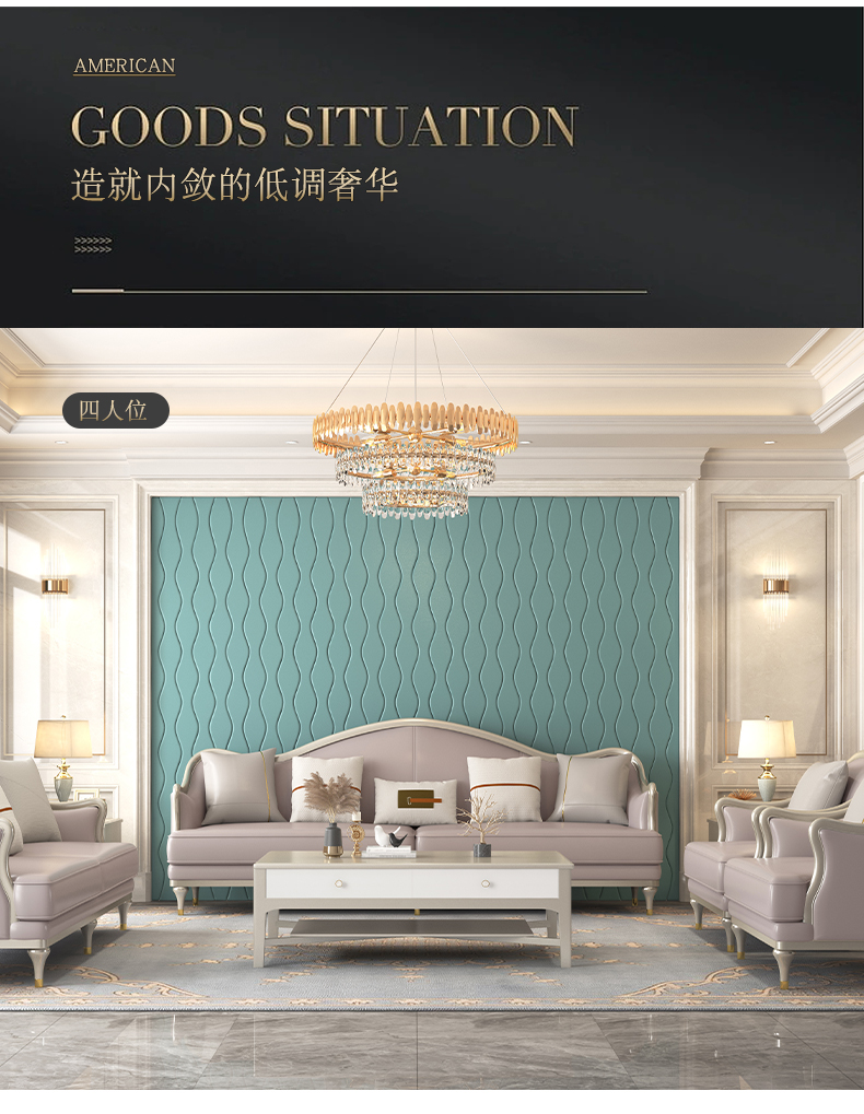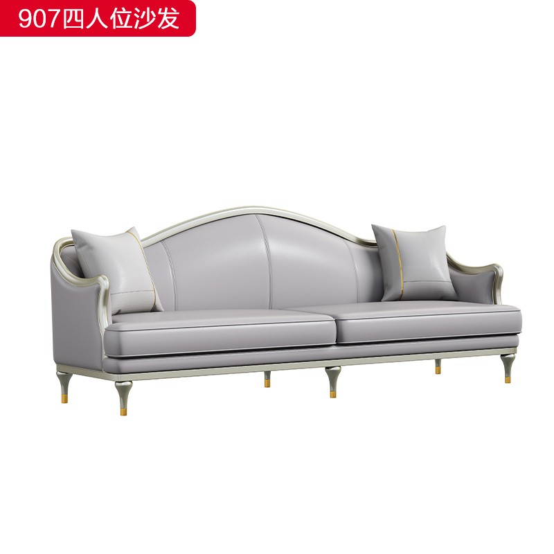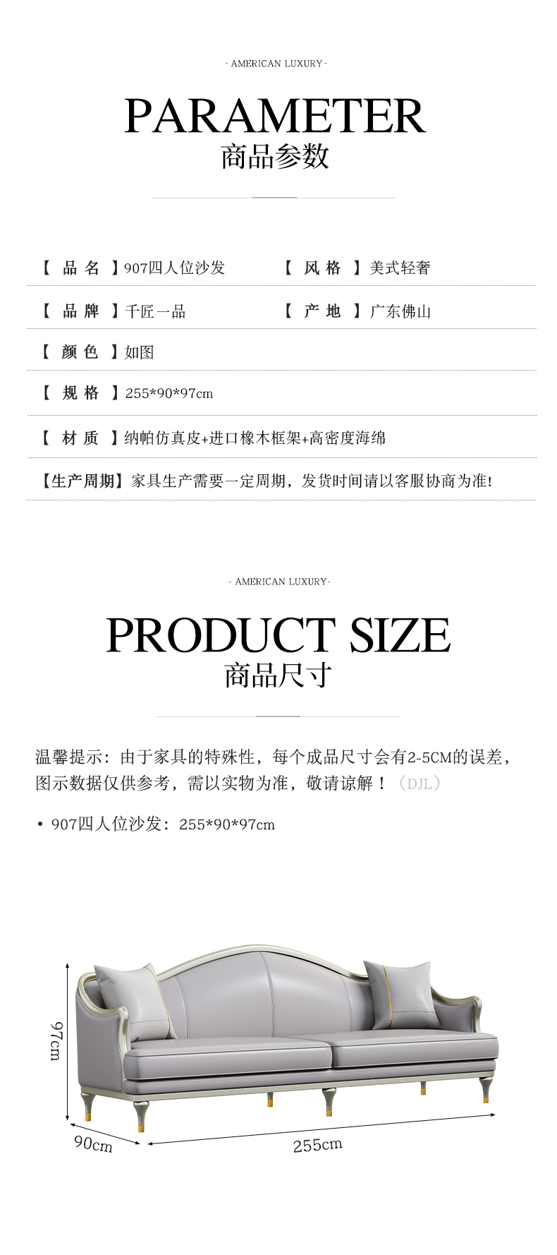 △千匠一品 轻奢美式风格 纳帕仿真皮+绒麻布 高档大气四人位沙发907四人位沙发-X