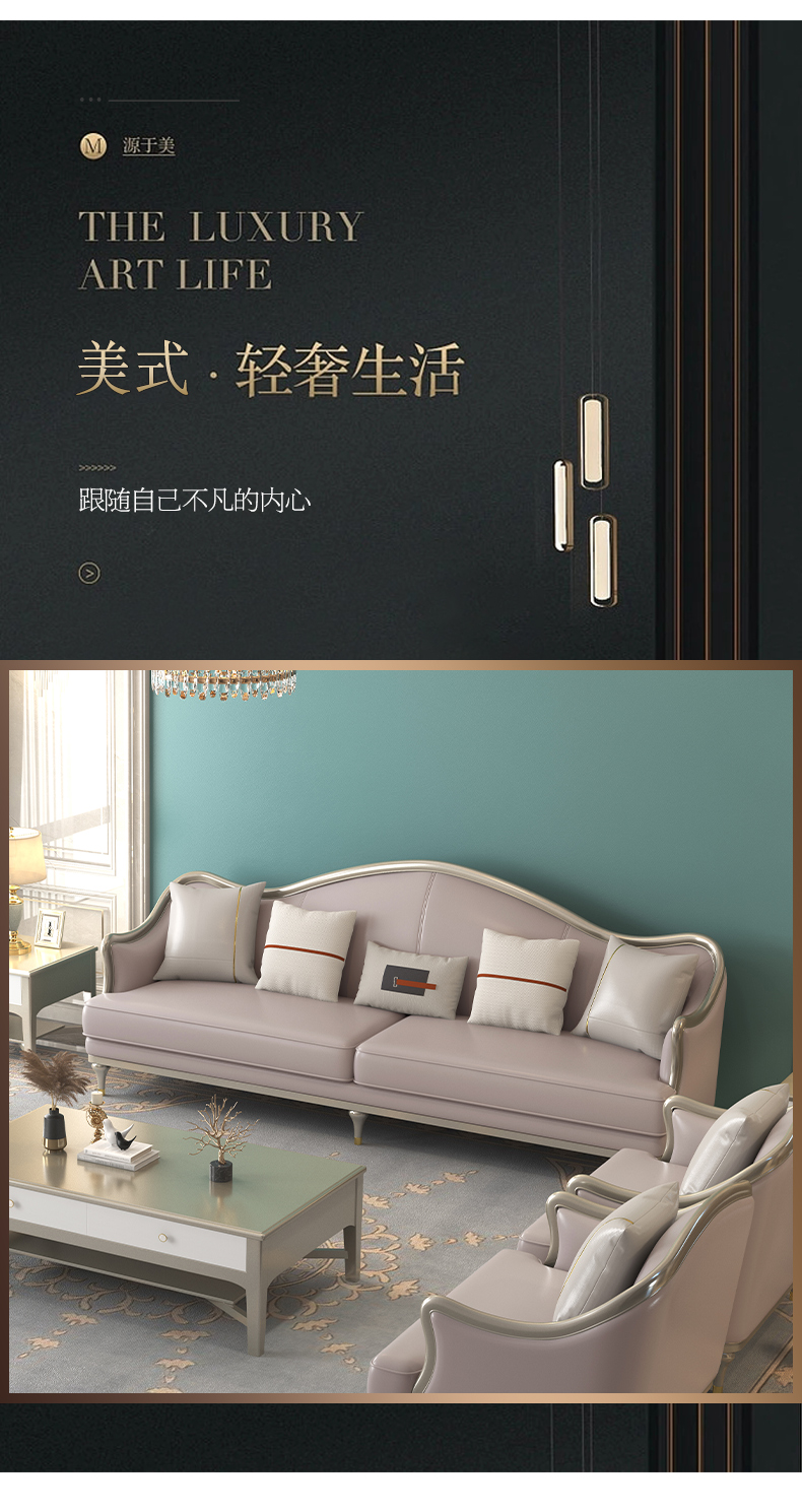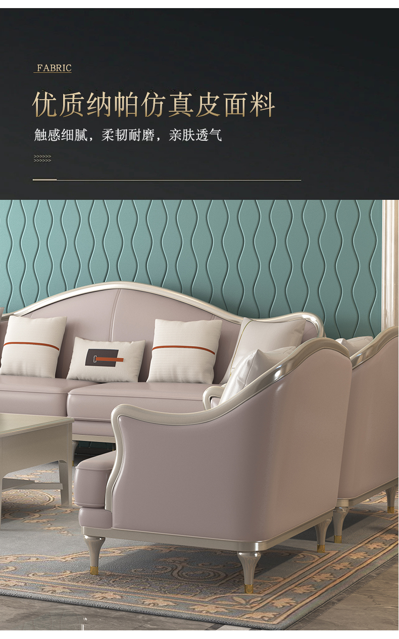 △千匠一品 轻奢美式风格 帕仿真皮+绒麻布 高档轻奢沙发 902沙发-X