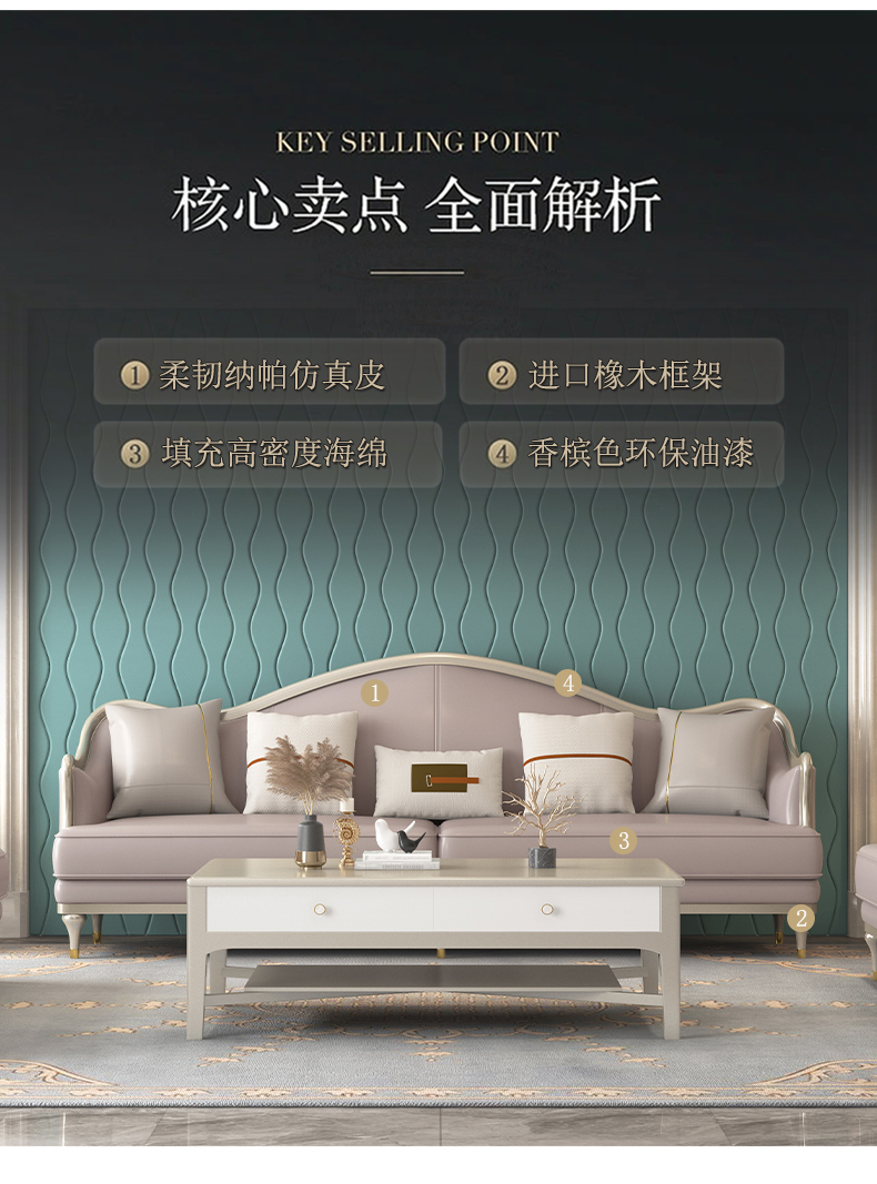 商品名称:△千匠一品 轻奢美式风格 纳帕仿真皮+绒麻布 高档大气四人位沙发907四人位沙发-X