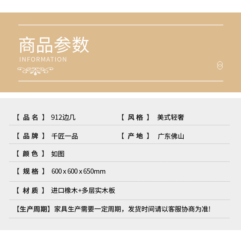 商品名称:△千匠一品 轻奢美式风格 实木+实木多层 高档大气边几 912边几-X