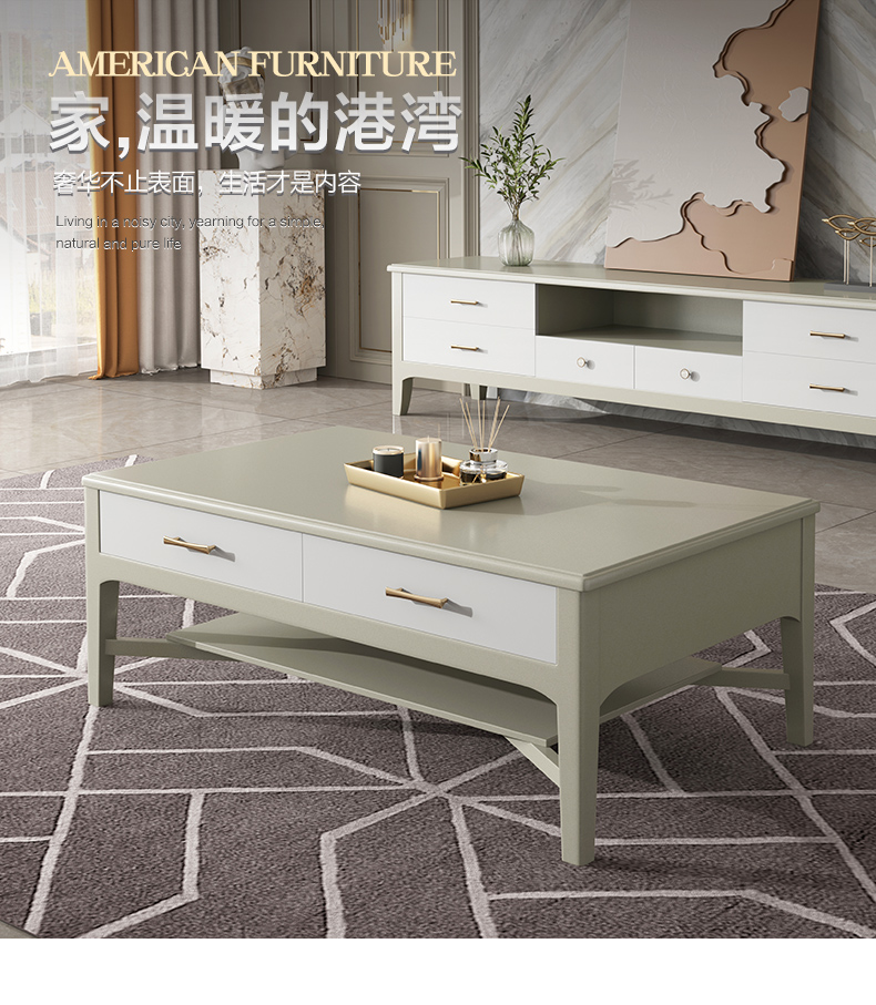 △千匠一品 轻奢美式风格 实木+实木多层 高档大气茶几 912茶几-X