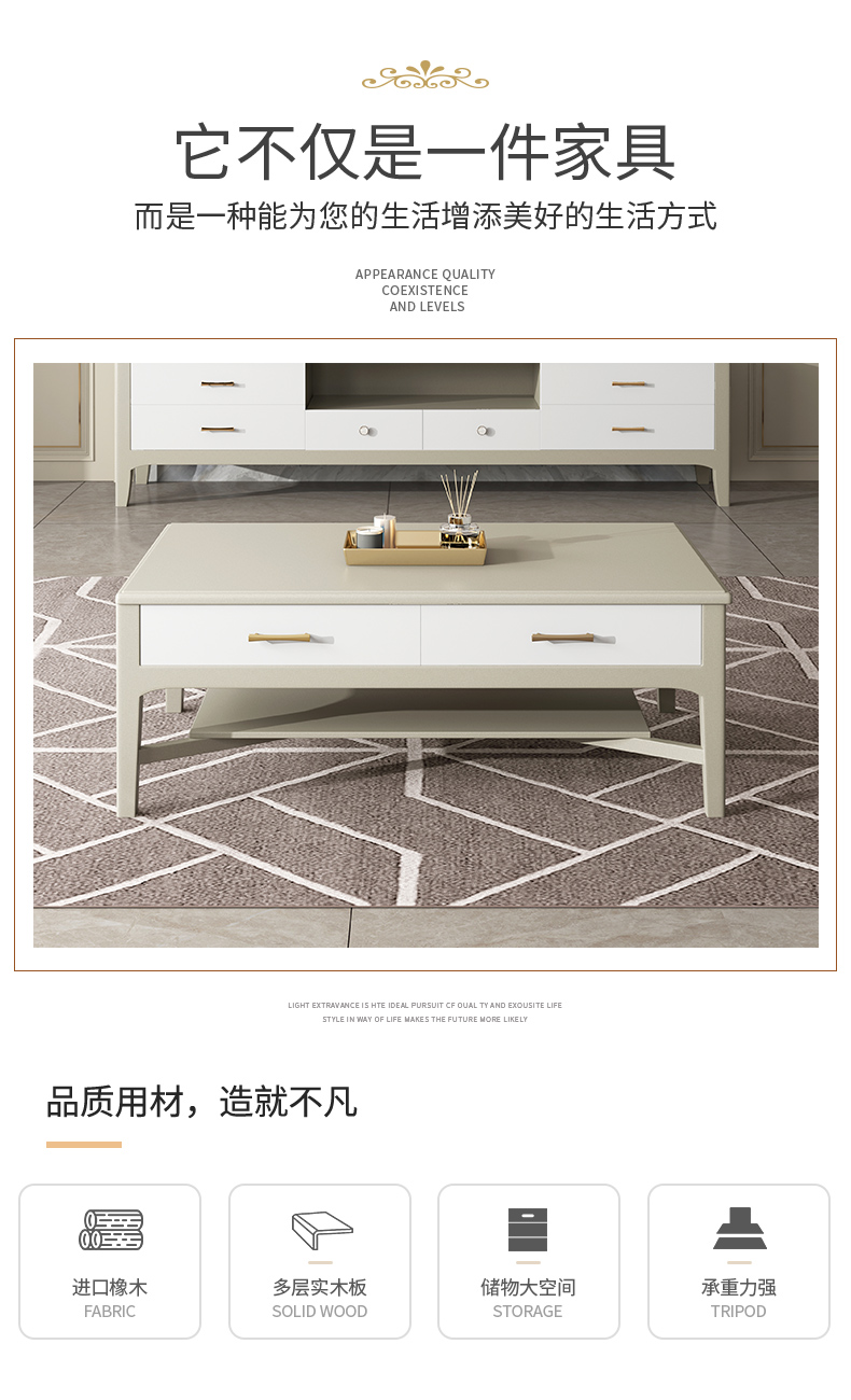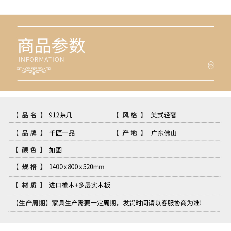 商品名称:△千匠一品 轻奢美式风格 实木+实木多层 高档大气茶几 912茶几-X