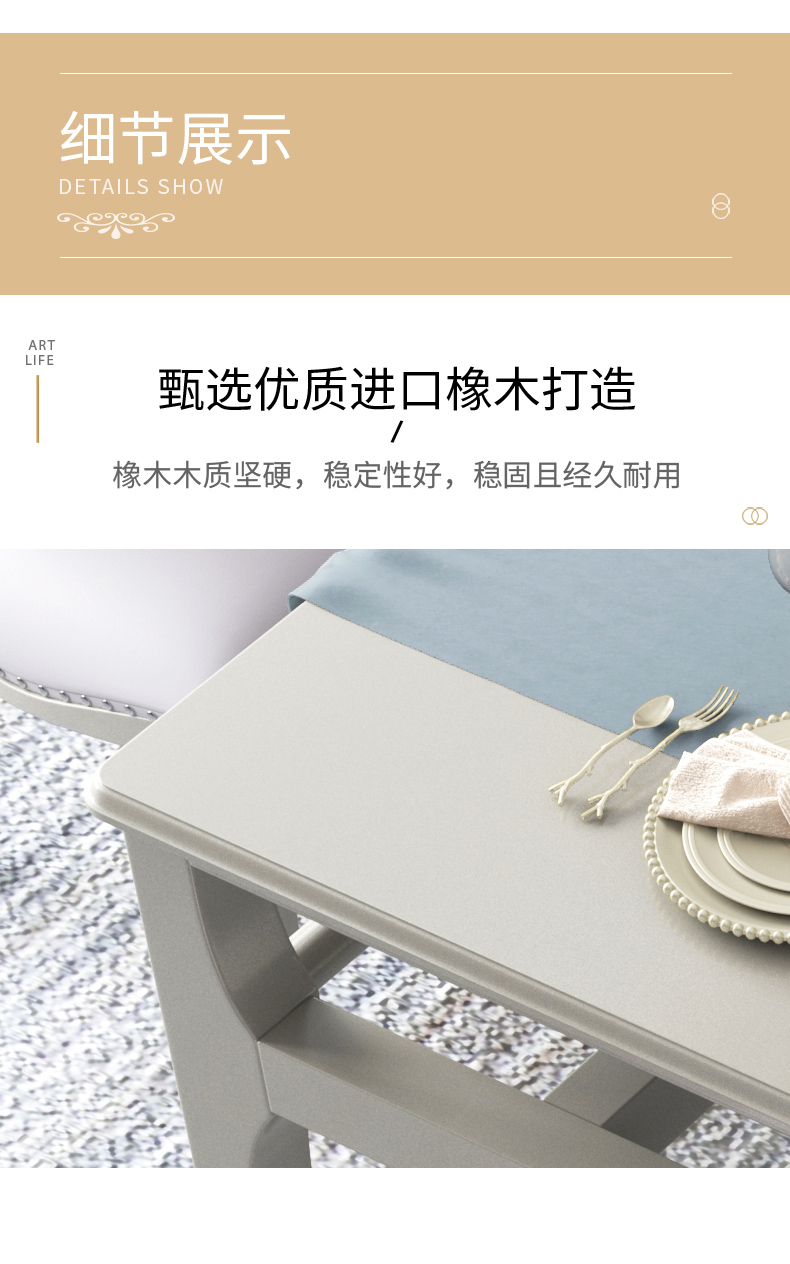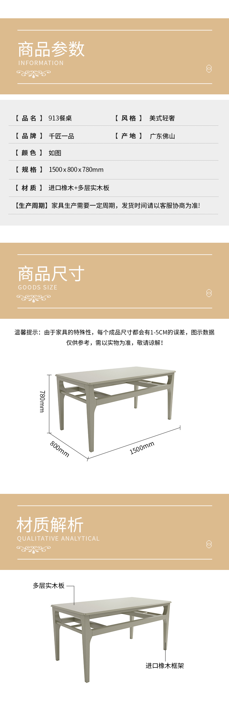 商品名称:△千匠一品 轻奢美式风格 实木+实木多层 高档大气餐桌913餐桌-X