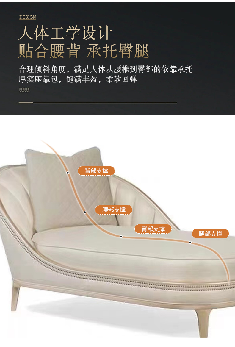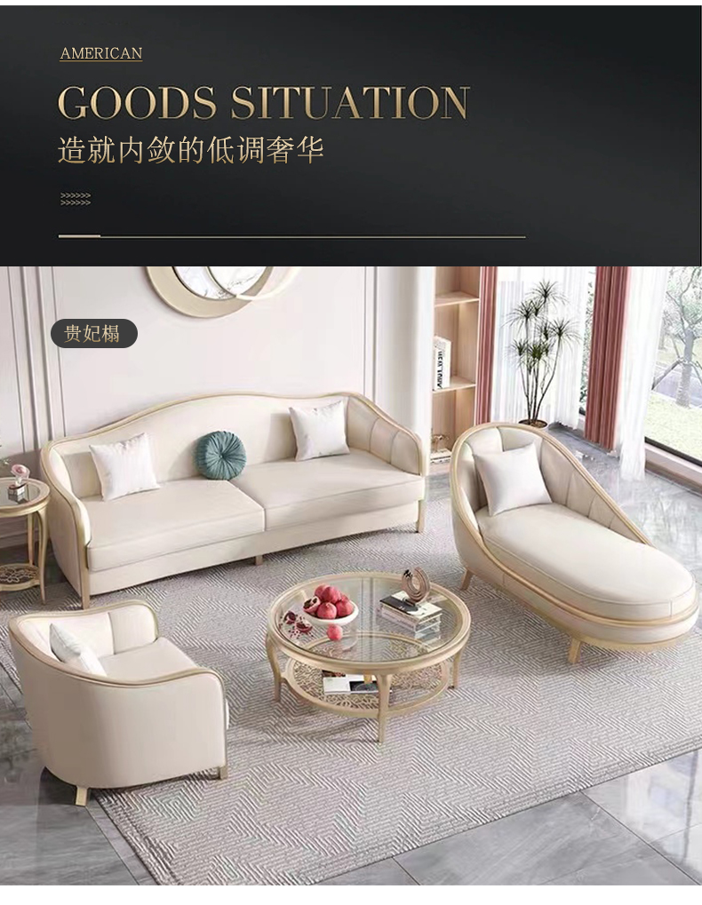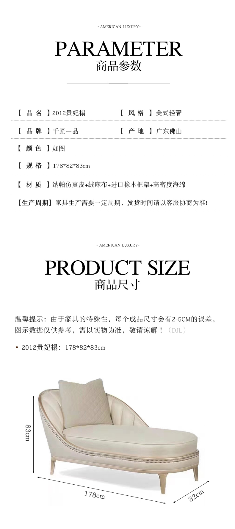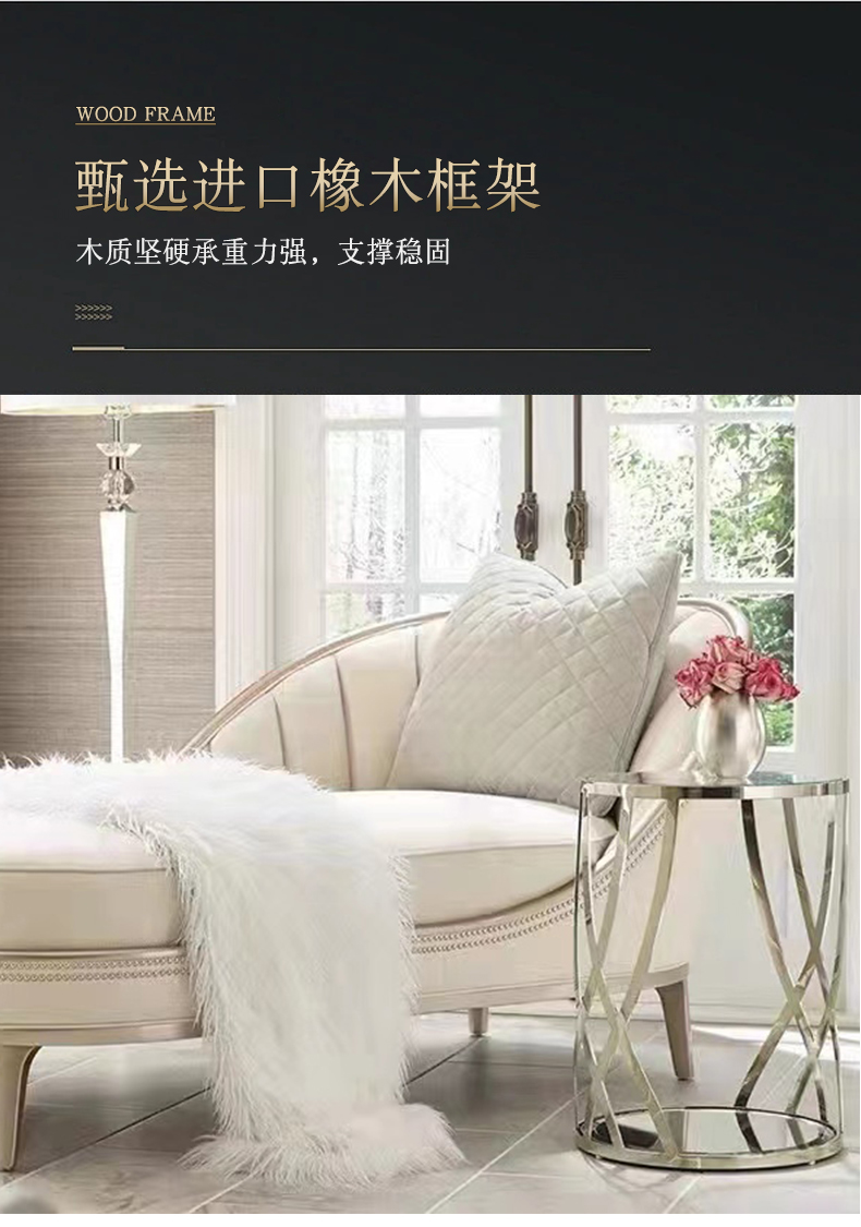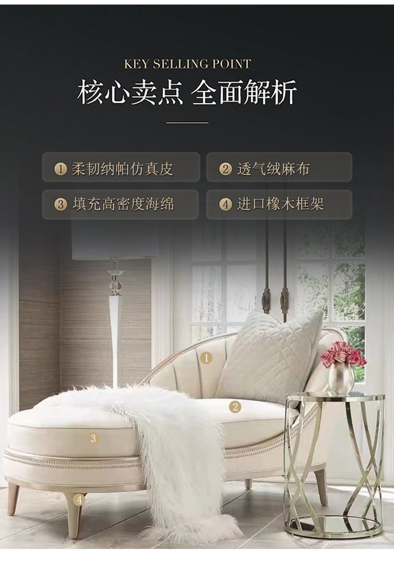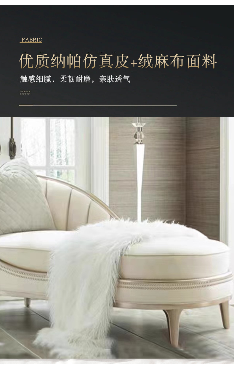 商品名称:△千匠一品 轻奢美式风格 纳帕仿真皮+绒麻布 高档网红款沙发 2012贵妃榻-X