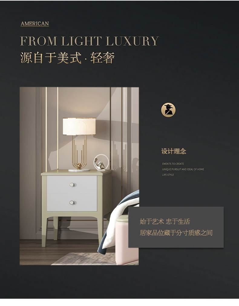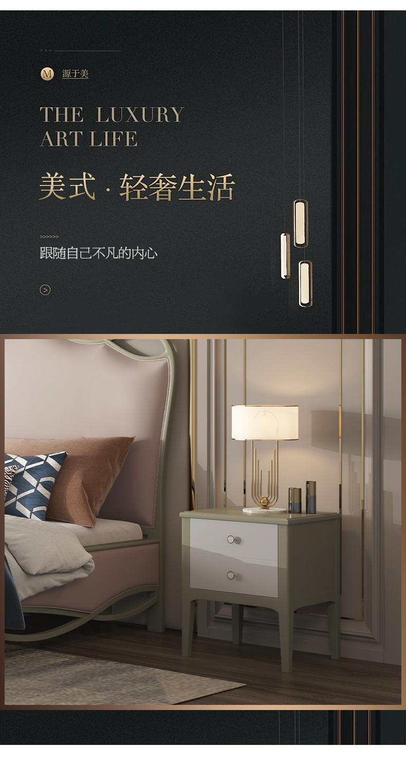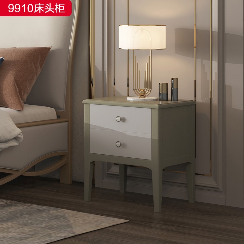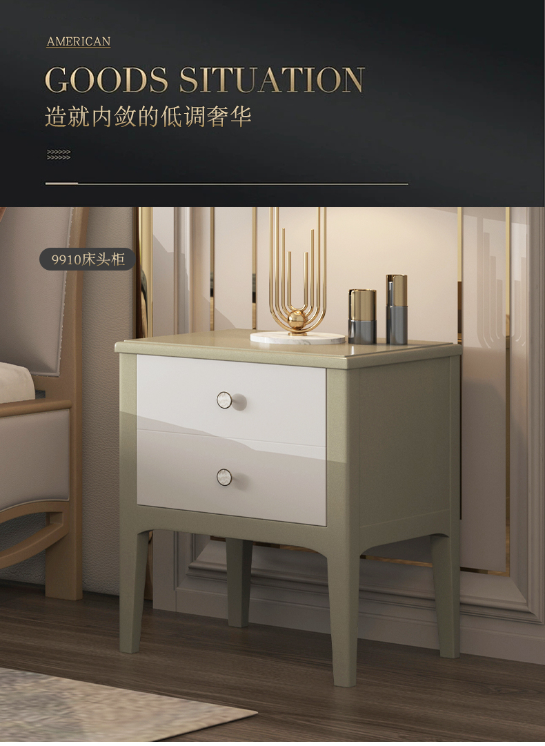 △千匠一品 轻奢美式风格 实木+实木多层 高档大气床头柜9910床头柜-X