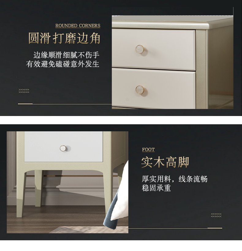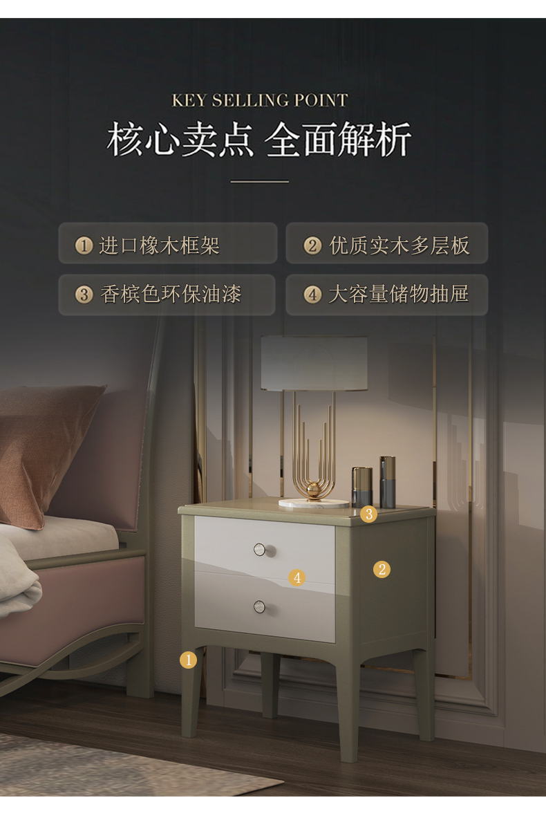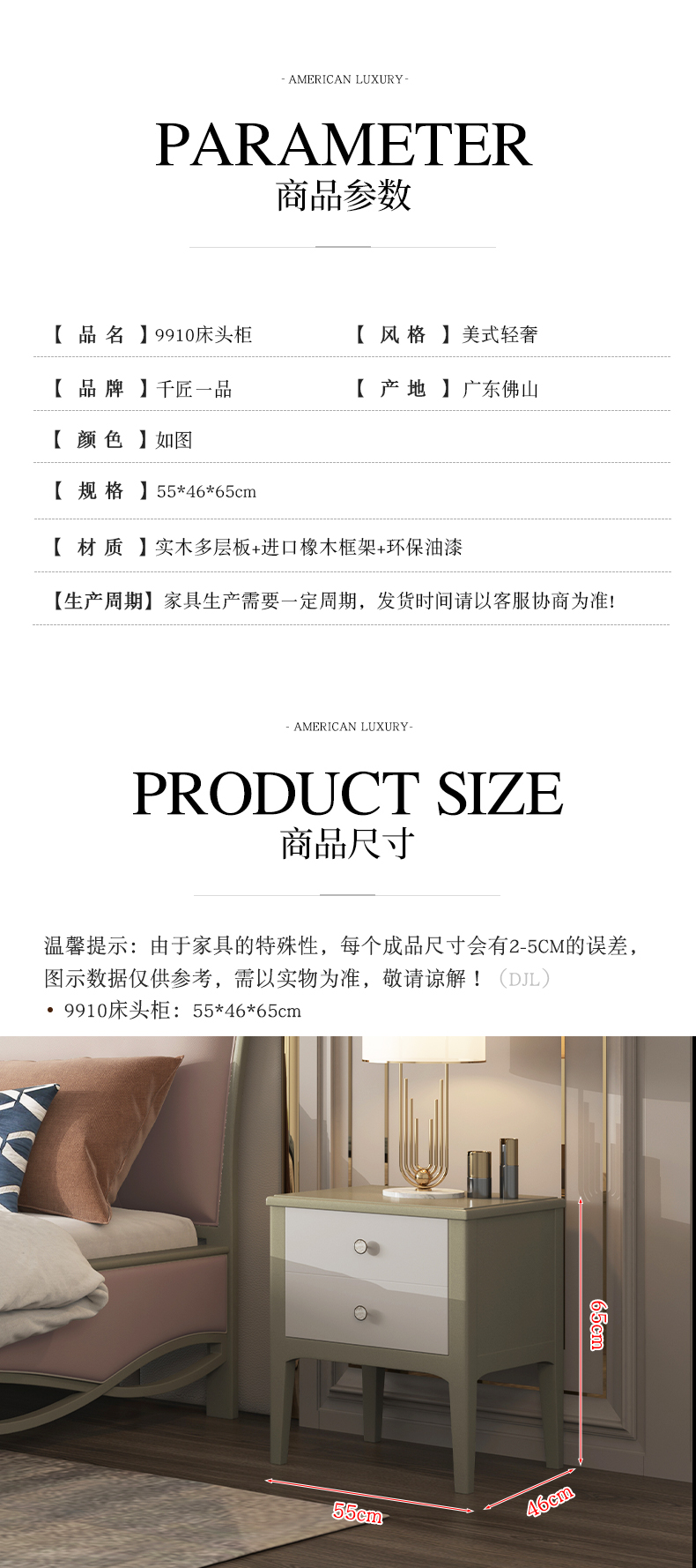 商品名称:△千匠一品 轻奢美式风格 实木+实木多层 高档大气床头柜9910床头柜-X