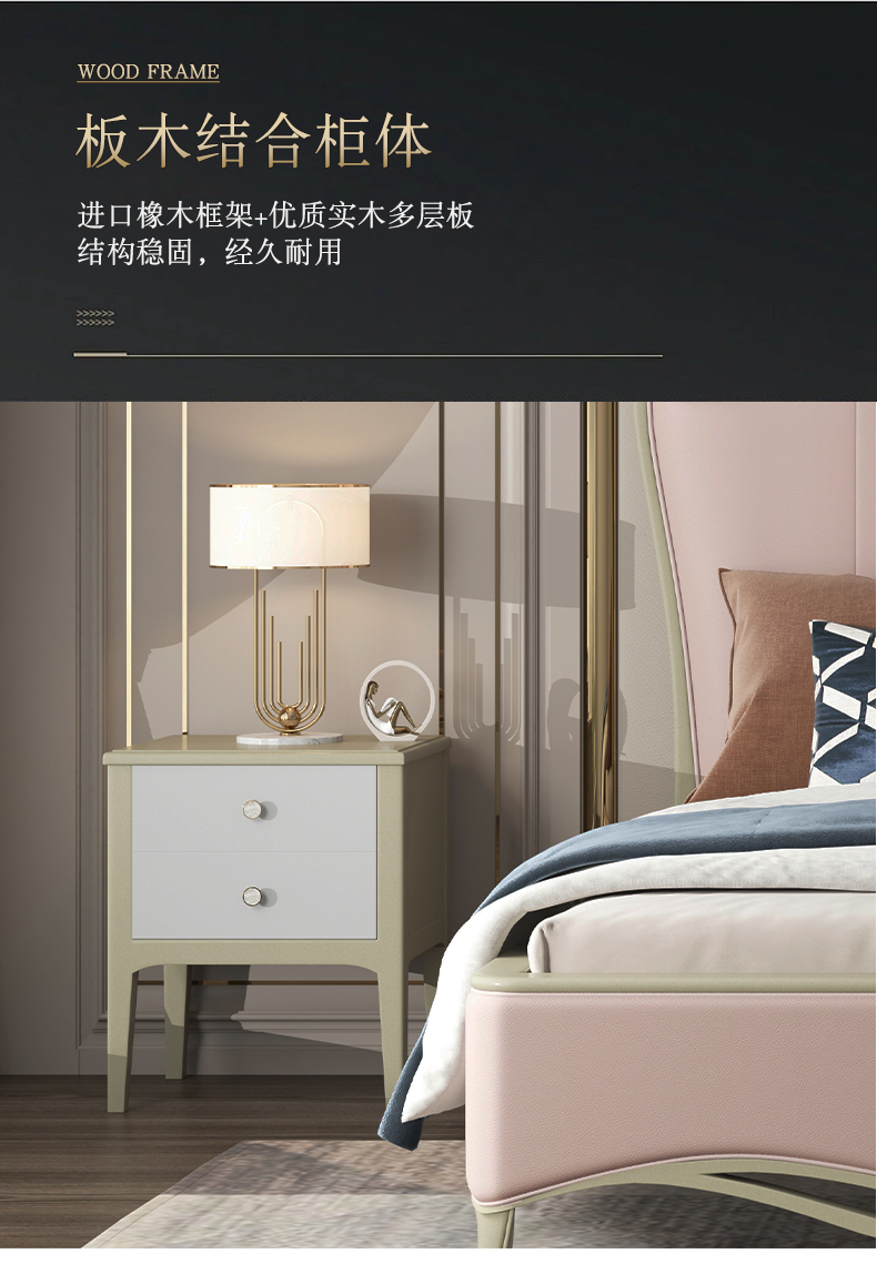 千匠一品现代极简优质头层真皮+实木框架+高回弹海绵双人床-NS19床头柜NS02-G