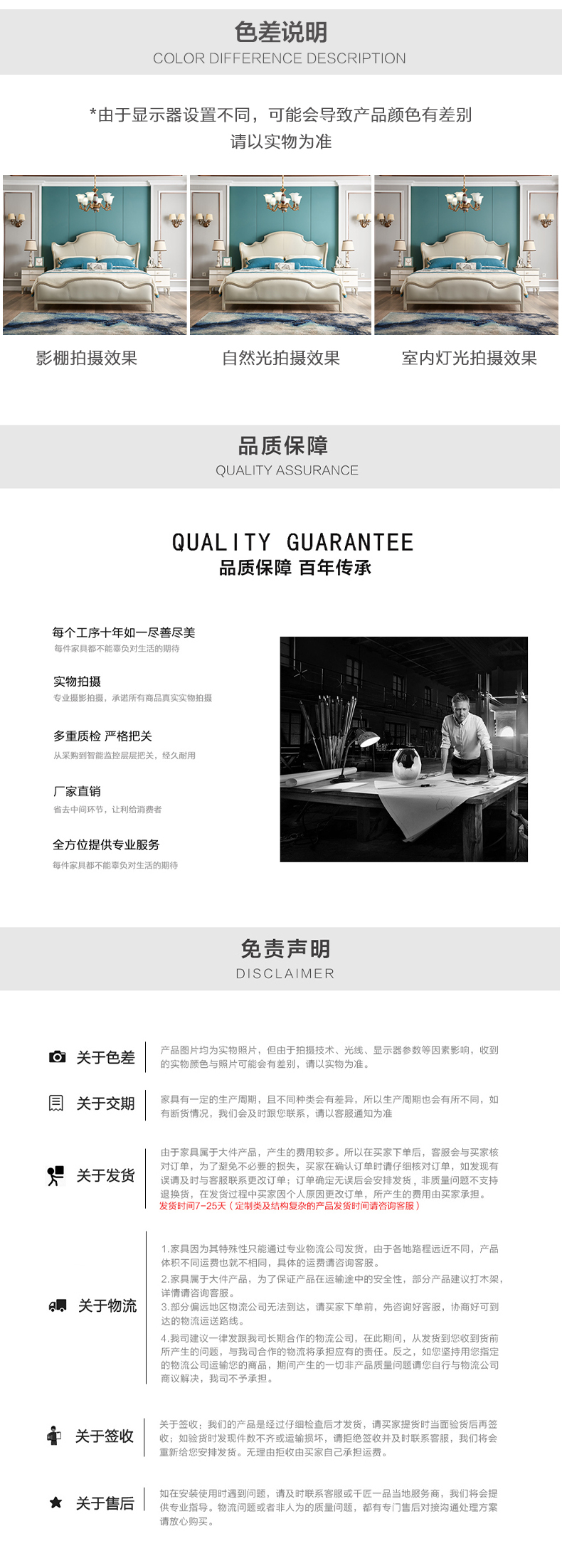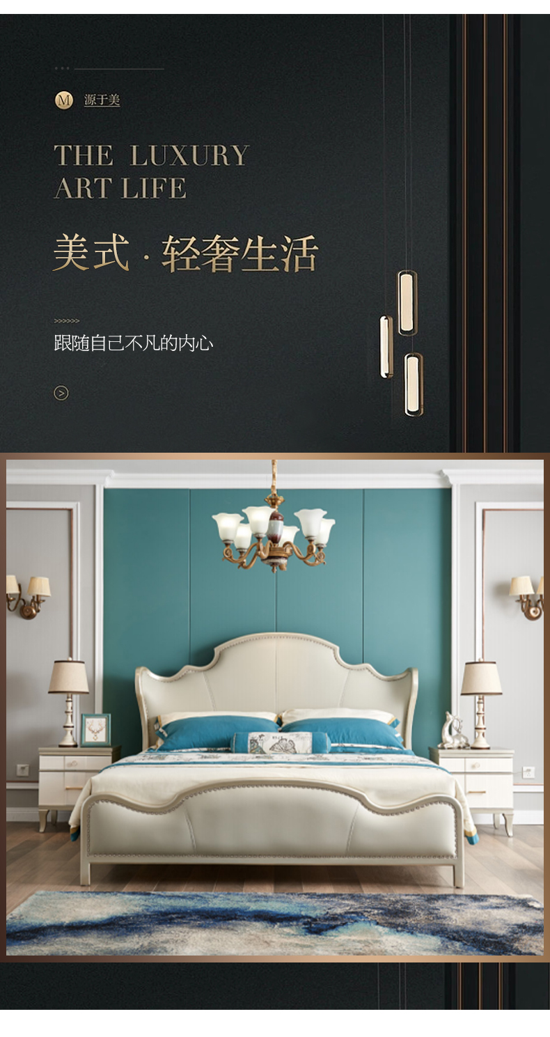 △千匠一品 美式风格金丝檀木框架+油蜡仿真皮+海绵1.8M床9812-C