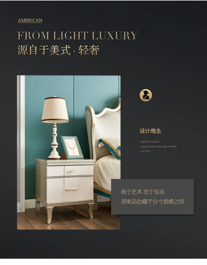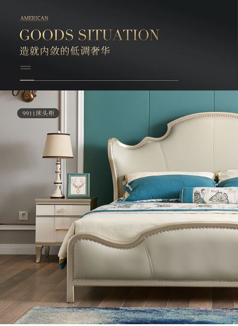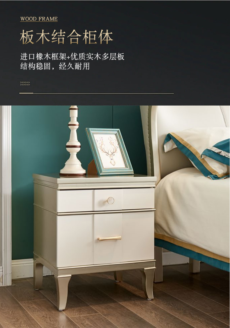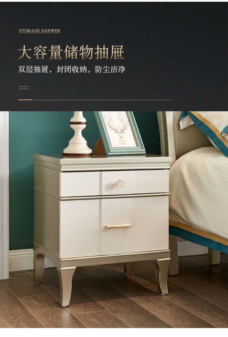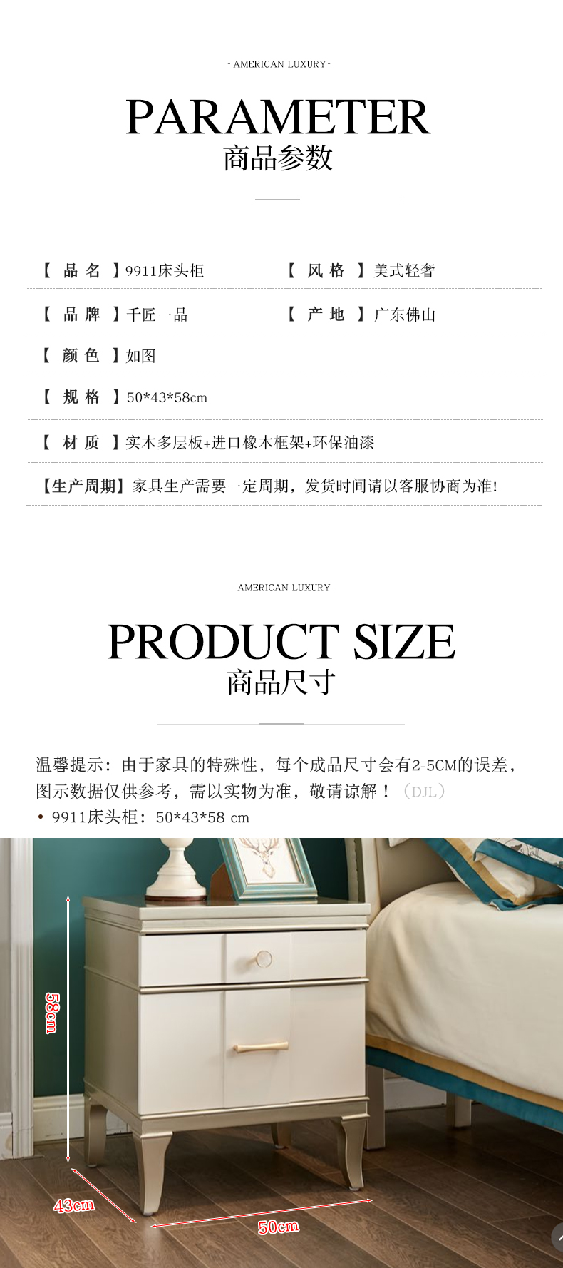 商品名称:△千匠一品 轻奢美式风格 实木+实木多层 高档大气床头柜9911床头柜-X