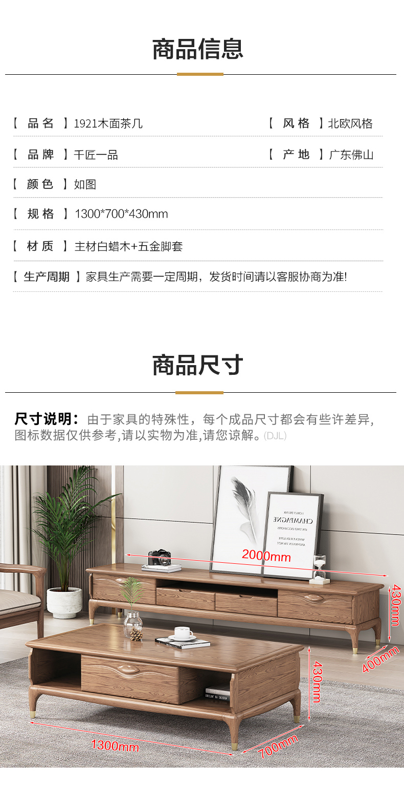 商品名称:千匠一品 北欧风格 白蜡木+五金套脚 时尚高档茶几 1921木面茶几-X