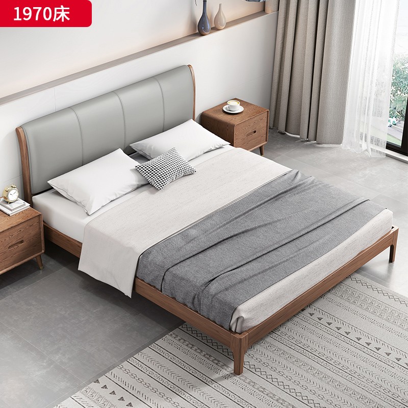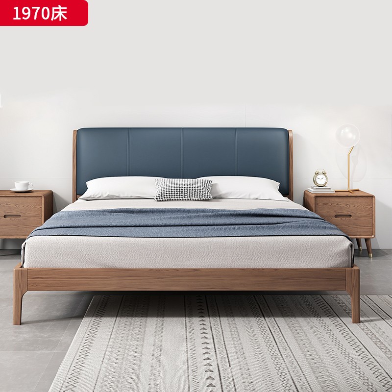 千匠一品 北欧风格 北美进口白蜡木+优质仿真皮+高密度海绵 精致简约床 1971床-X