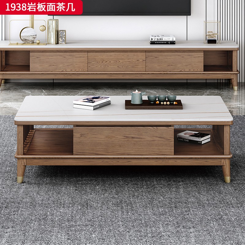 千匠一品 北欧风格 白蜡木+岩板 高档大气茶几 1928木面茶几/1938岩板面茶几-X