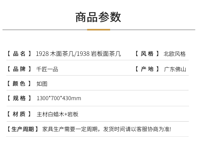 商品名称:千匠一品 北欧风格 白蜡木+岩板 高档大气茶几 1928木面茶几/1938岩板面茶几-X