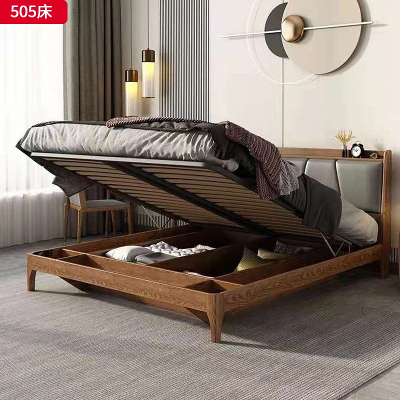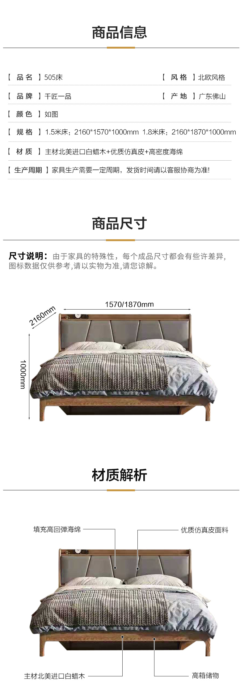 商品名称:千匠一品 北欧风格 北美进口白蜡木+优质仿真皮+高密度海绵 高档大气床 505床-X