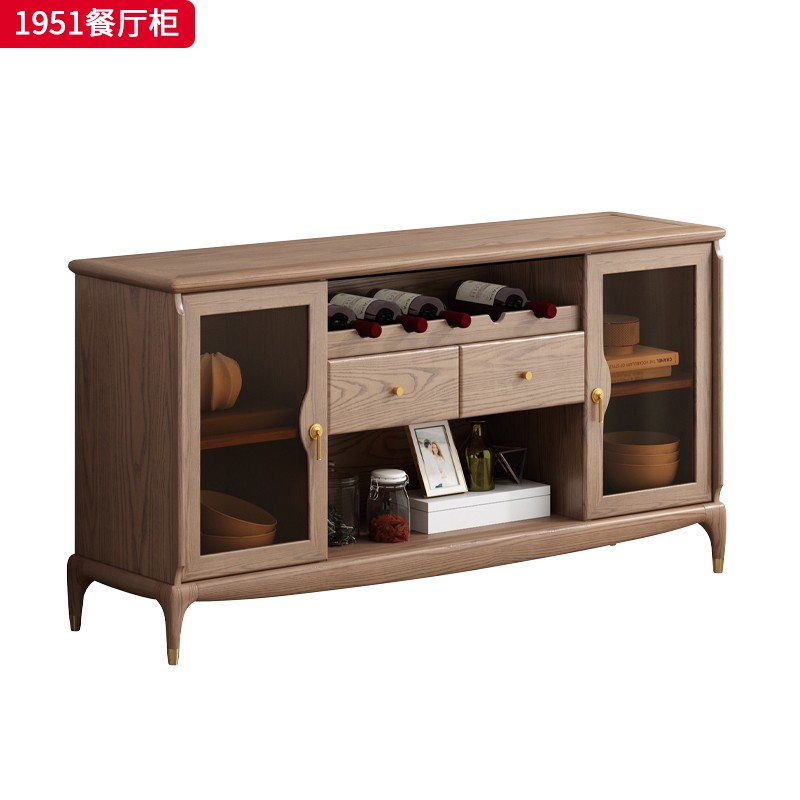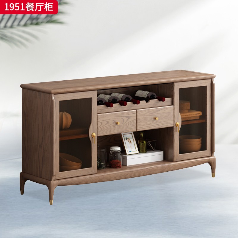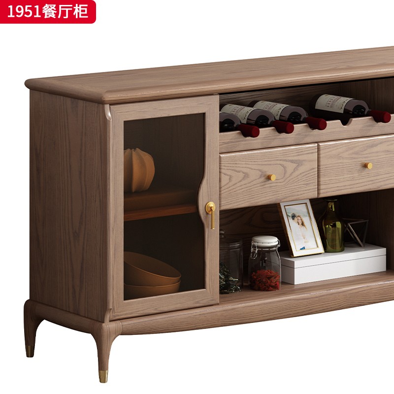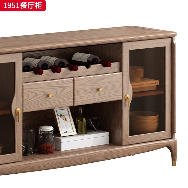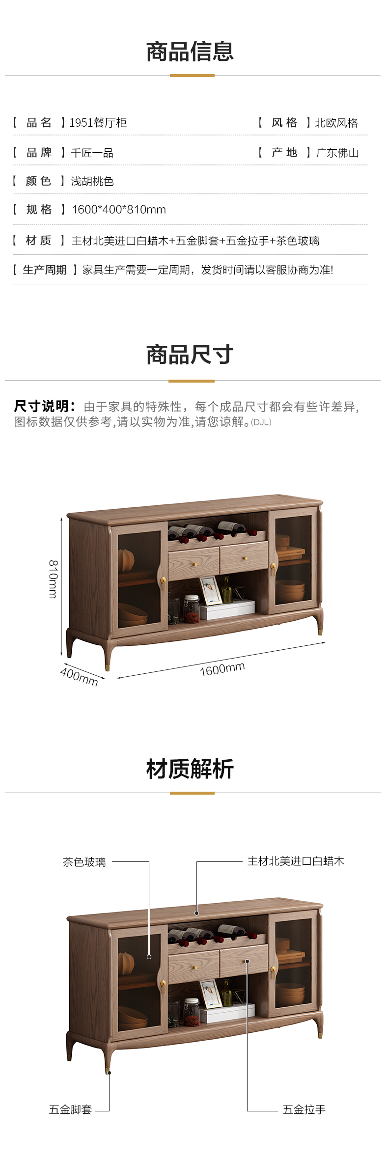 商品名称:千匠一品 北欧风格 北美进口白蜡木+五金拉手+茶色玻璃+五金套脚 高档大气餐边柜 1951 餐厅柜-X