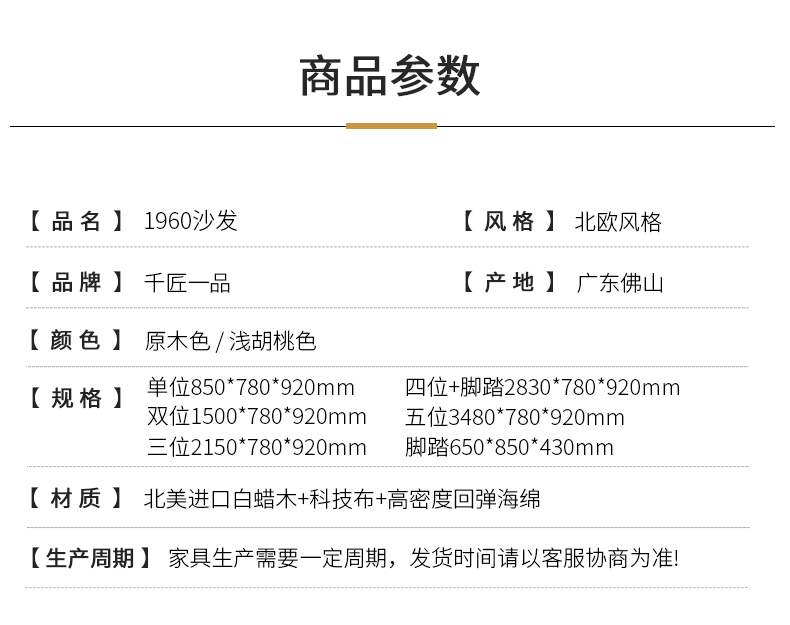 商品名称:千匠一品 北欧风格 北美进口白蜡木+科技布+高密度回弹海绵 高档大气沙发 1960沙发-X