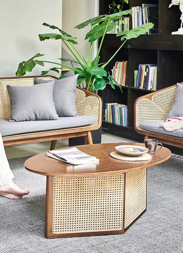 千匠一品 北欧\诧寂风格 北美进口白腊木+印尼真藤 时尚特色茶几 T090藤椭圆茶几-X