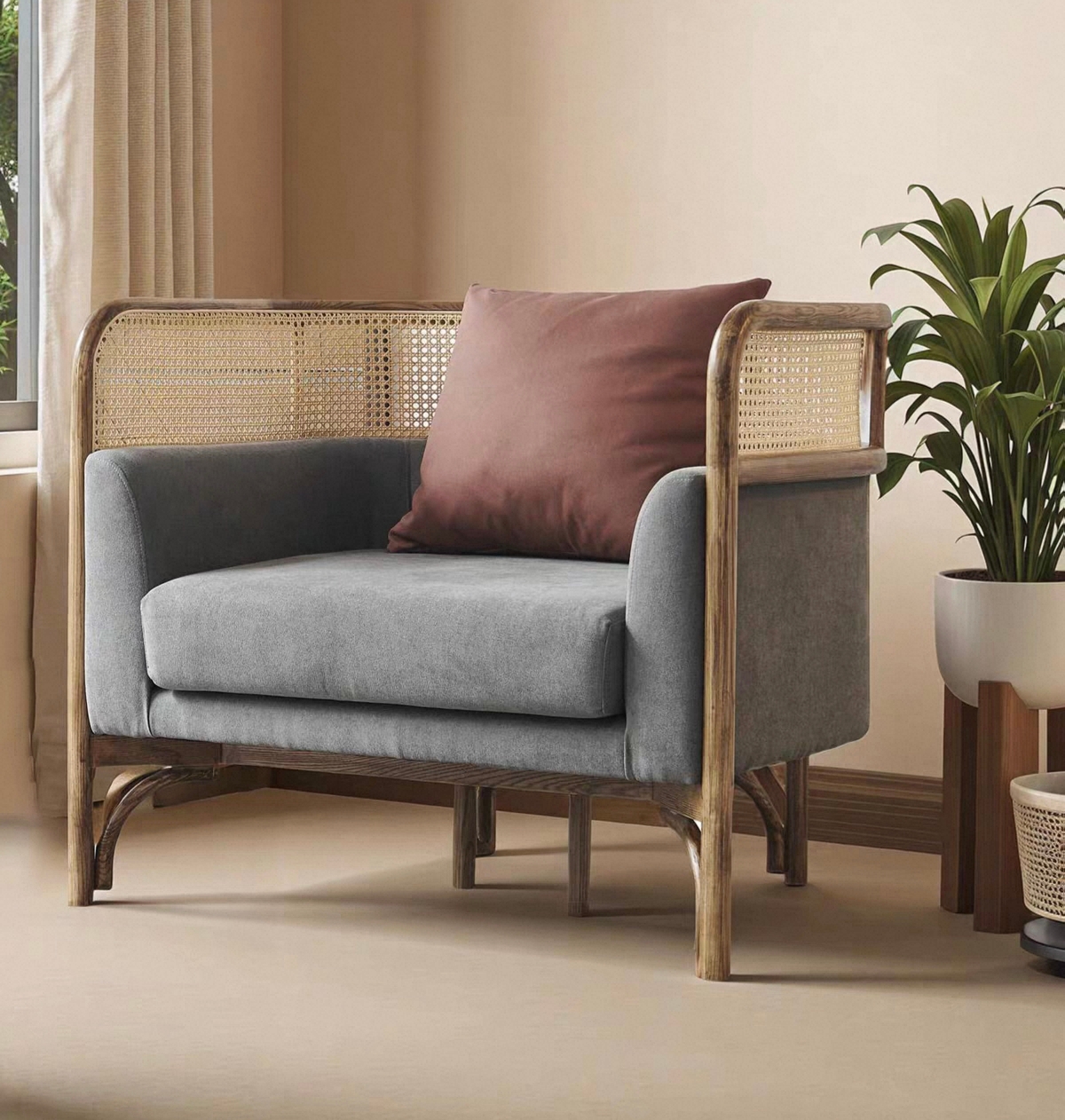 商品名称:千匠一品 北欧(诧寂)风格 北美进口白蜡木+印尼真藤+布艺 时尚大气沙发 SF018沙发-X
