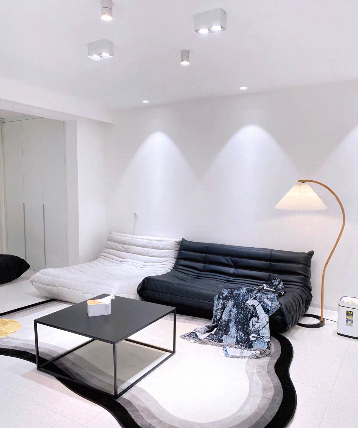 千匠一品 意式极简风格 欧洲进口烟熏白橡木皮+碳素钢脚架 时尚大气高矮茶几 1186茶几-X