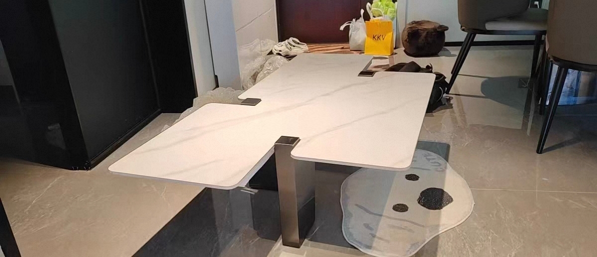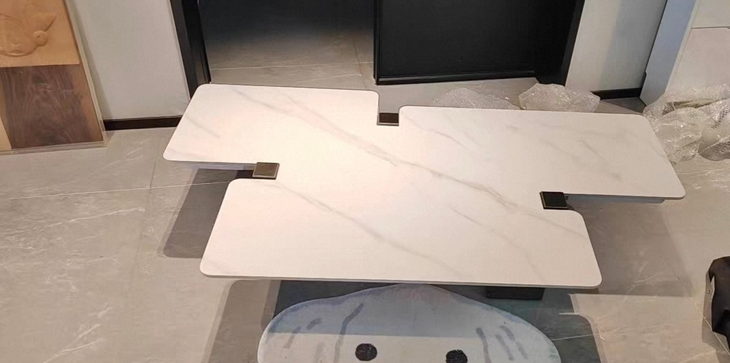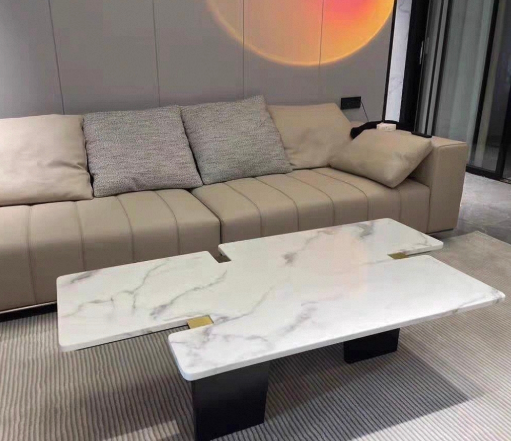 千匠一品 意式风格 意大利进口爵士白岩板台面+黑钛不锈钢脚 高档大气茶几 221异形茶几-X