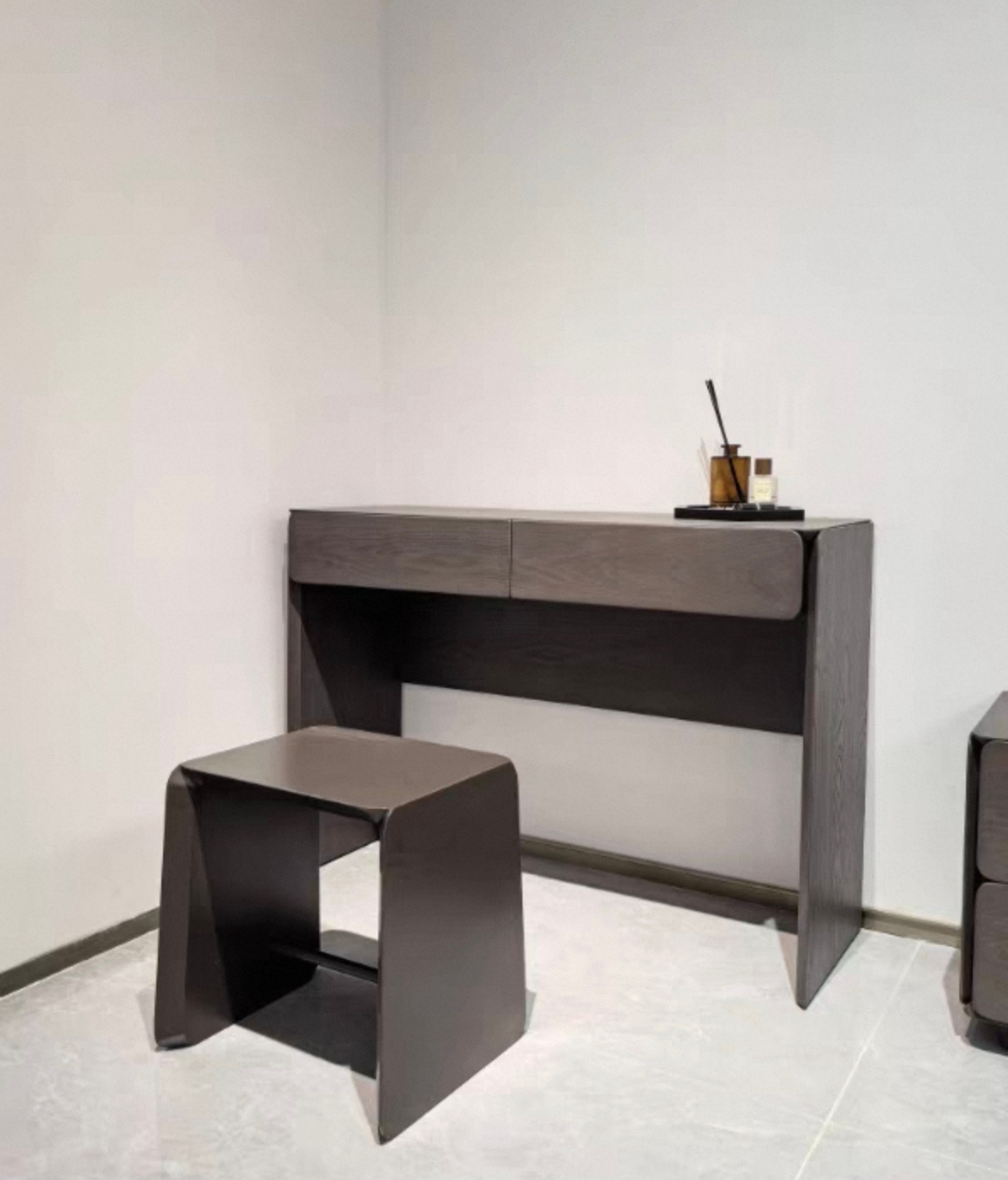 千匠一品 意式风格 欧洲进口烟熏白橡木皮+砂黑碳素钢脚 高档大气妆台 354妆台-X
