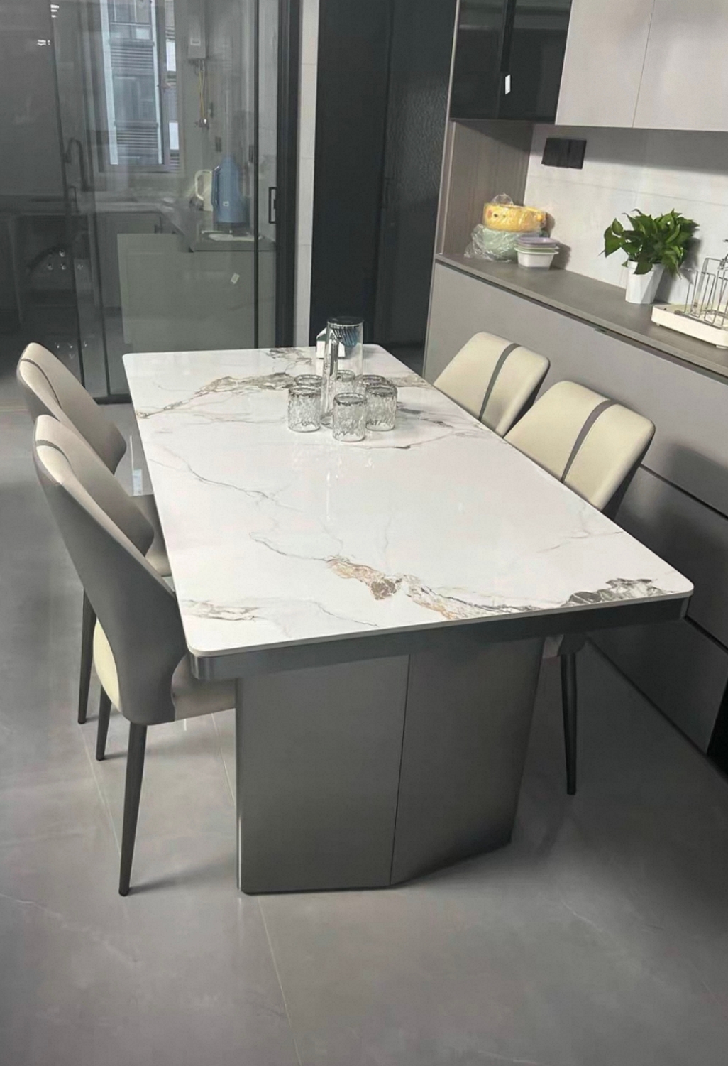 岩板颜色好漂亮啊,一套桌椅颜值好高!质量没得说,板材都蛮厚实的,客服服务也很好,我问了好多才下单的,挺满意的