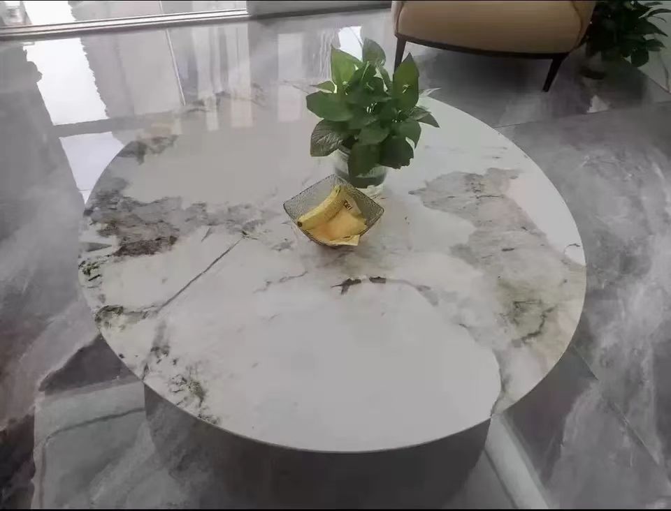 千匠一品 意式风格 潘多拉亮光奢石岩板+黑钛不锈钢五金底座 高档大气茶几 547圆茶几-X