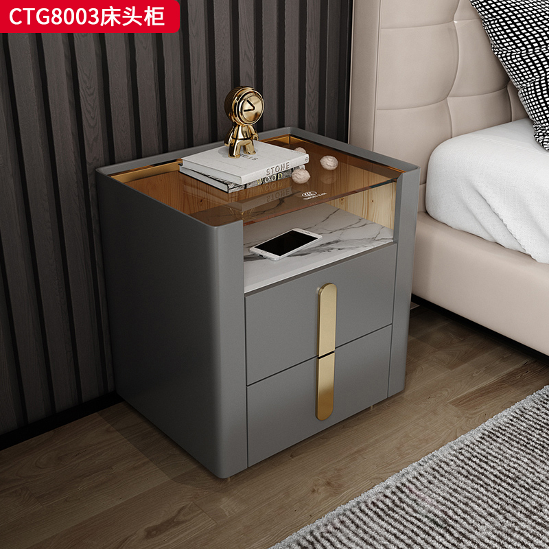 千匠一品现代极简优质头层真皮+实木框架+高回弹海绵双人床-NS19床头柜NS02-G