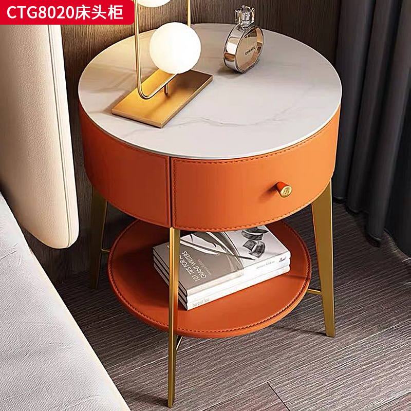 千匠一品 现代风格 优质西皮+E1级环保板材+不锈钢钛金+雪花白岩板 时尚大气床头柜CTG8020-J